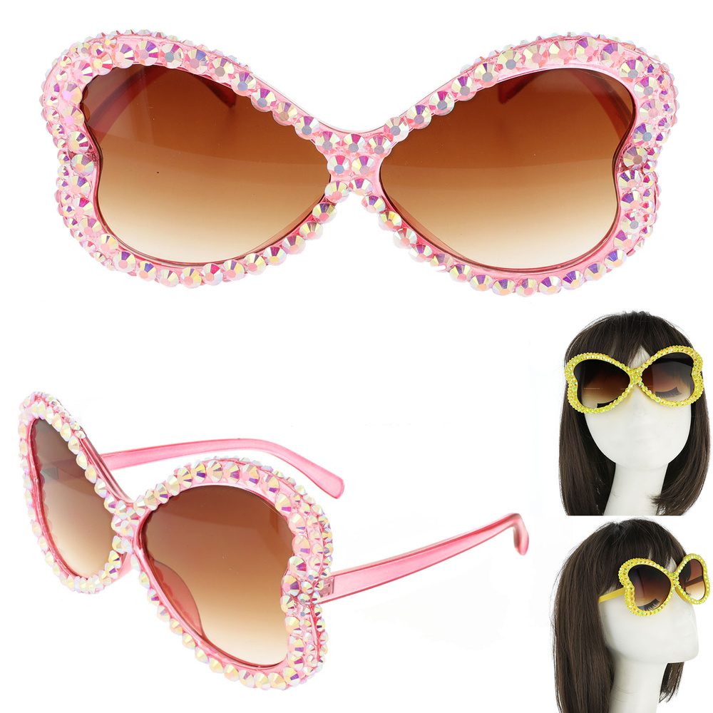 RHINESTONE STATEMENT OVERSIZED HEART SHAPED JEWELED SUNGLASSES