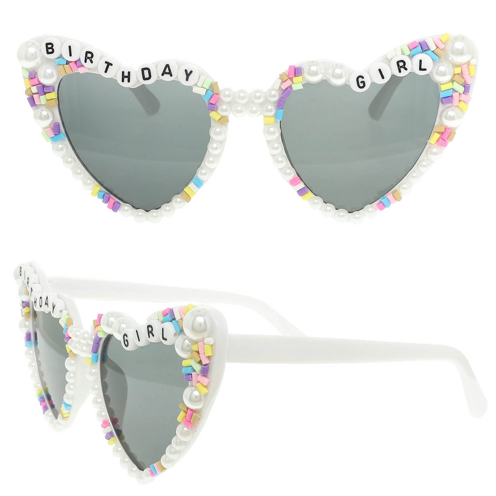 "BIRTHDAY GIRL" BEADED FASHION GLASSES WITH DECORATIVE PEARLS