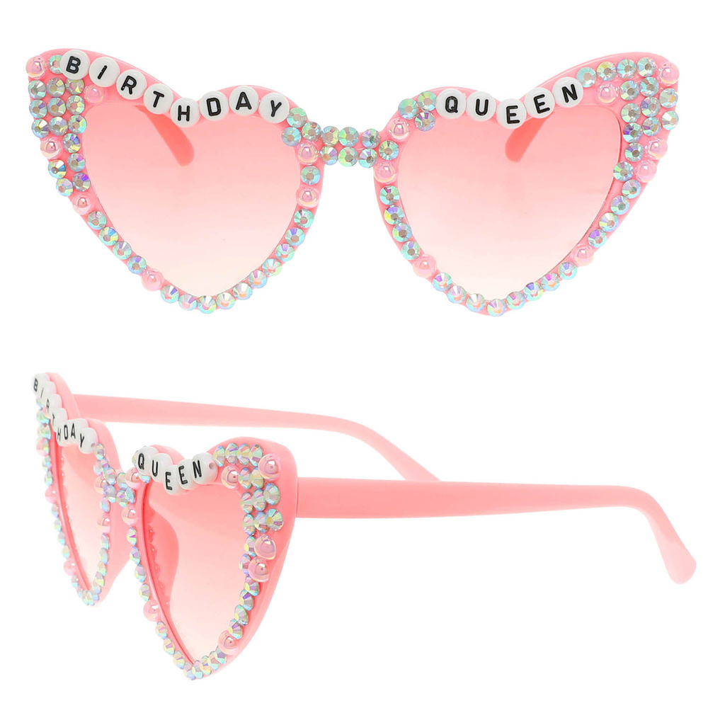 "BIRTHDAY QUEEN" FASHION GLASSES WITH DECORATIVE CRYSTALS AND PEARLS