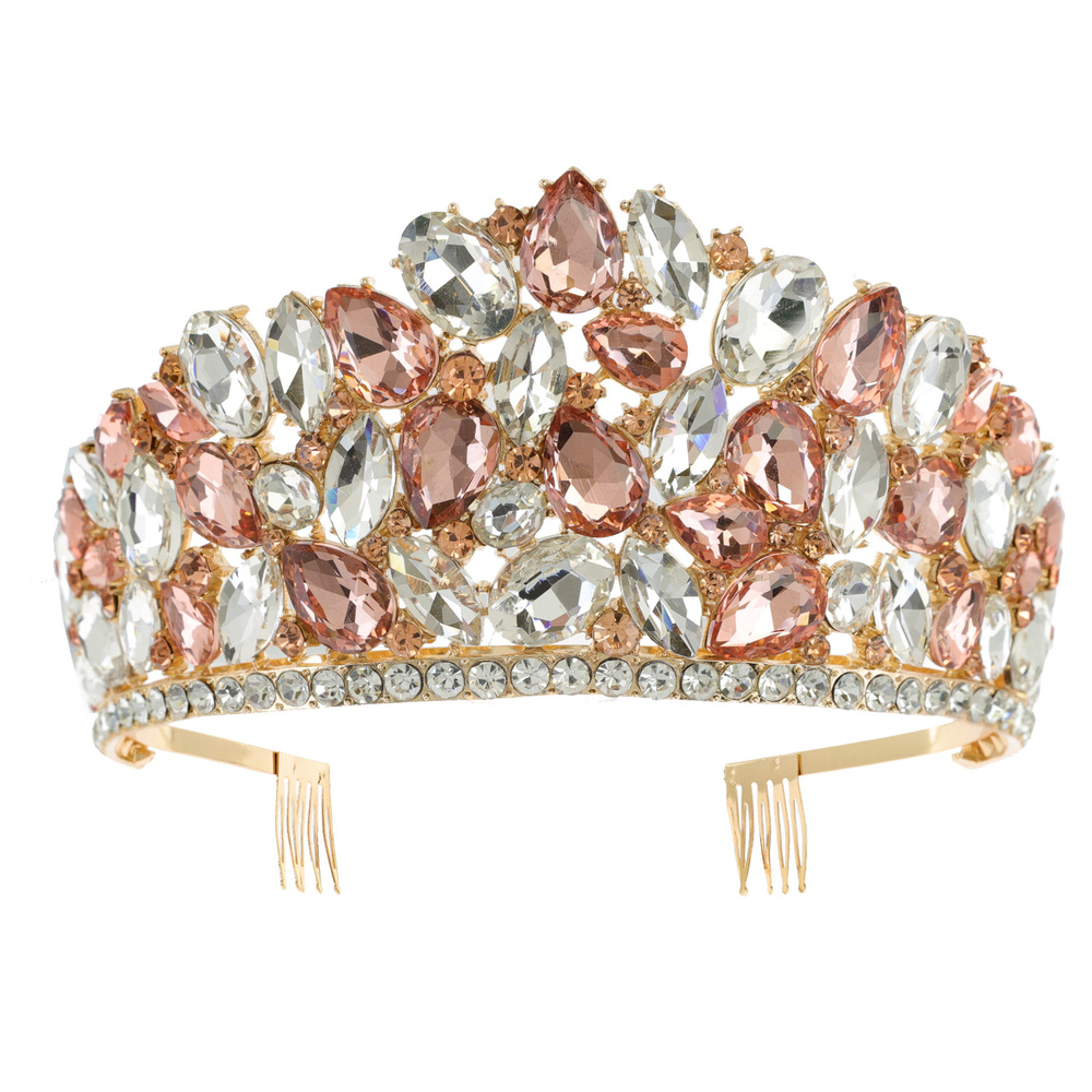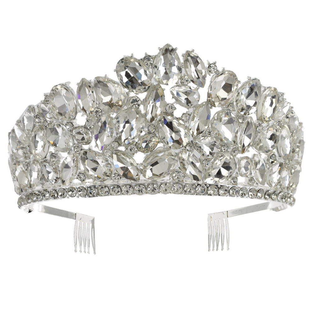 Crystal Rhinestone Gemstone Cluster Tiara With Comb