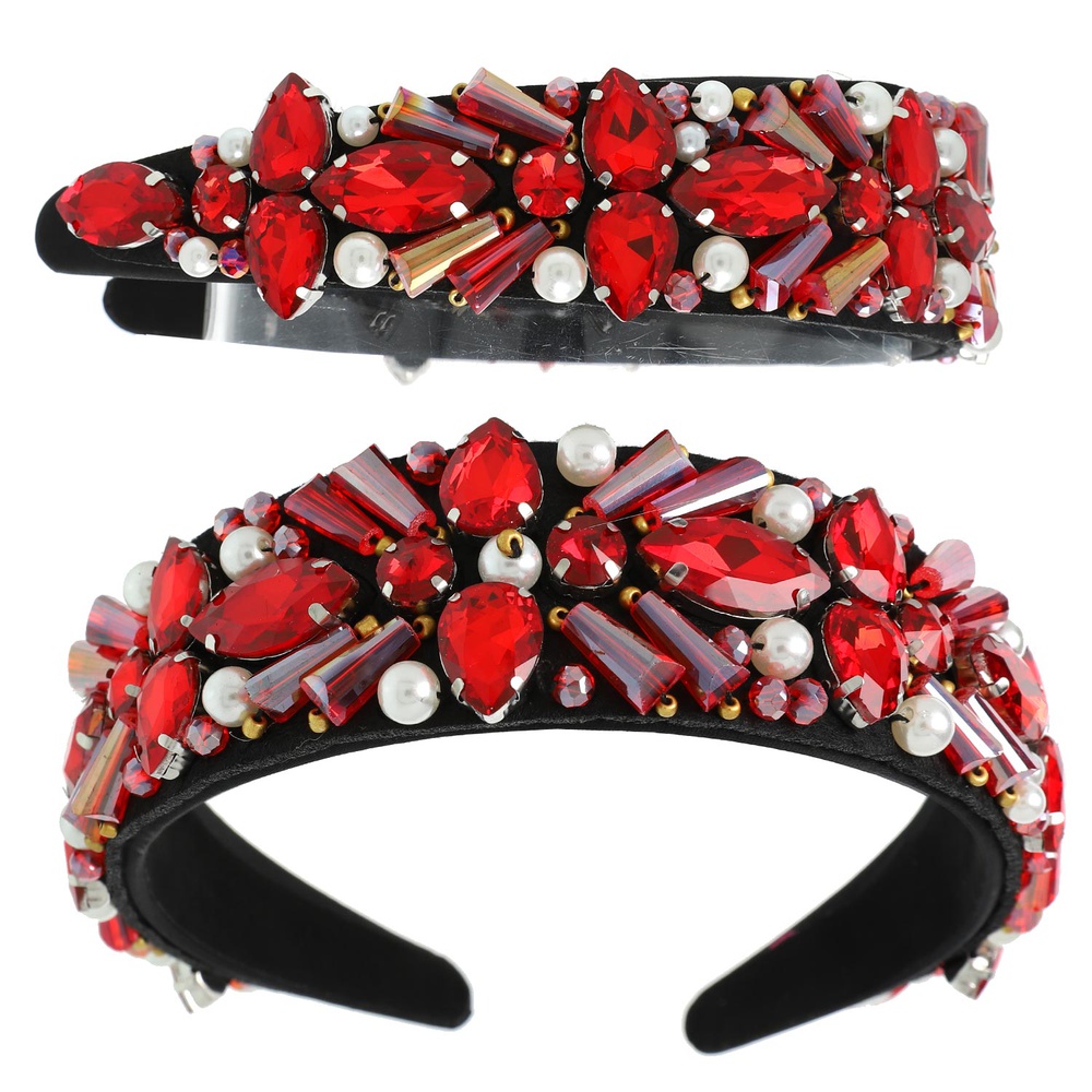 GLAM CRYSTAL GEMSTONE AND PEARL CLUSTER EMBELLISHED DRESSY HEADBAND