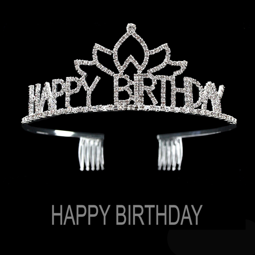 Crystal Rhinestone Happy Birthday Crown Comb Tiara