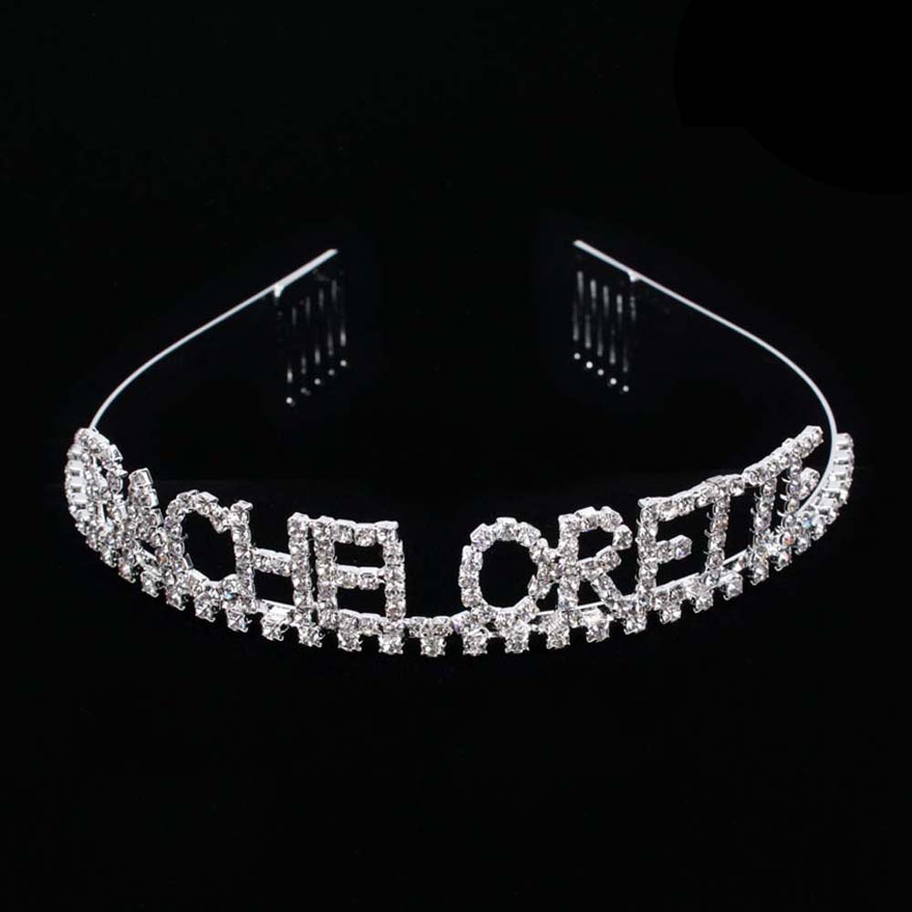 Rhinestone "BACHELORETTE" Tiara Crowm with Side Combs