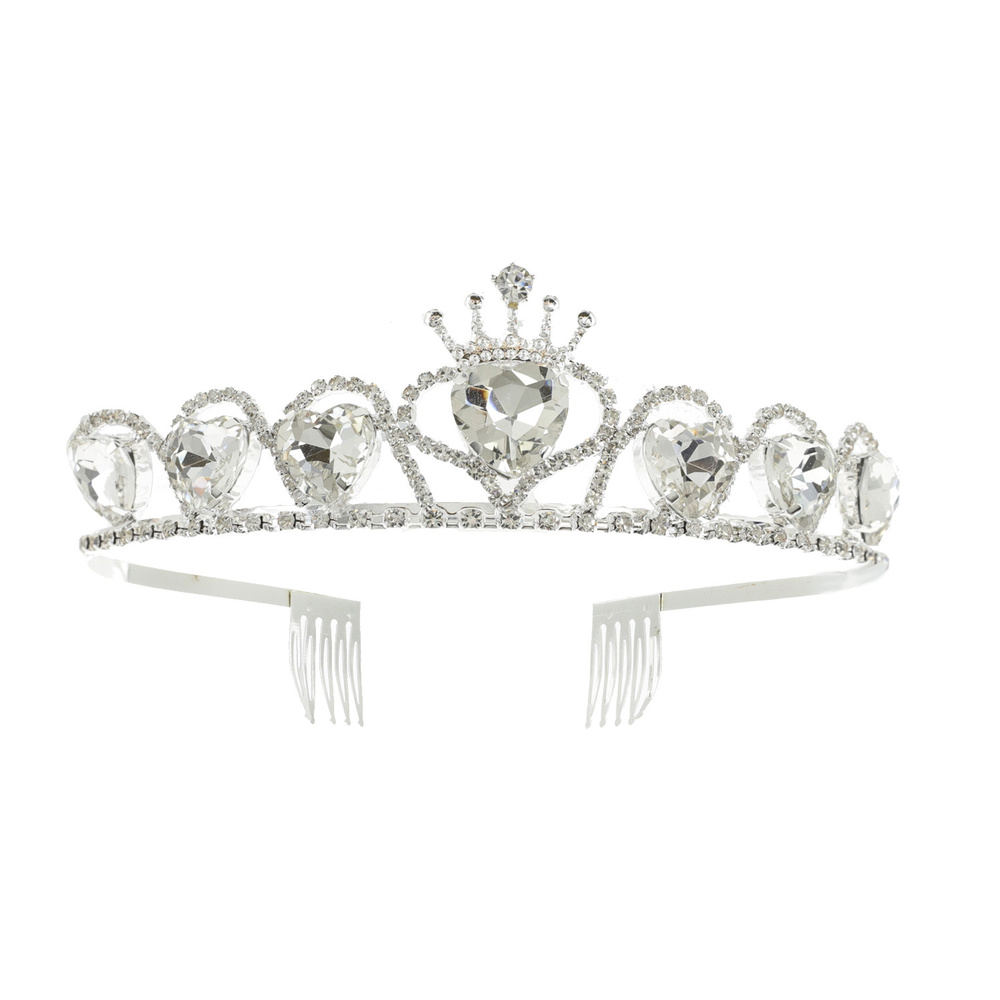 Heart Shaped Gemstone Crystal Rhinestone Pave Tiara With Comb