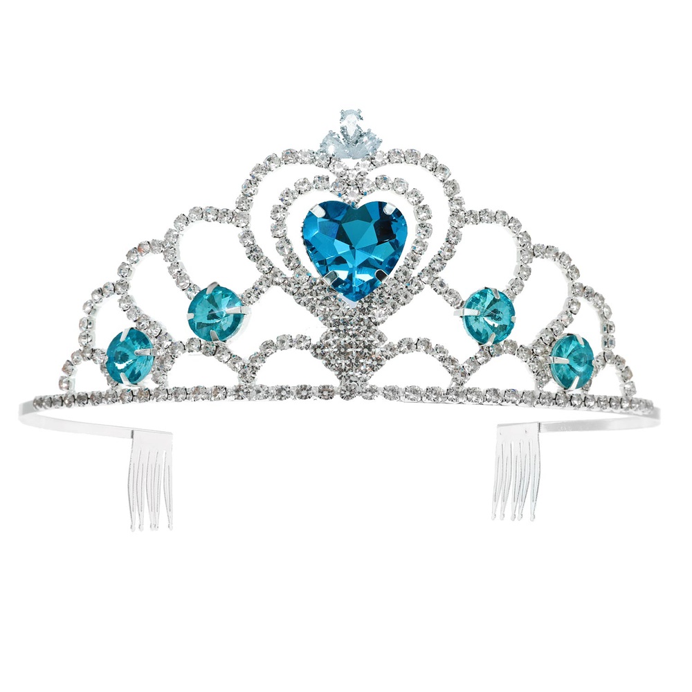 Crystal Rhinestone Blue Heart Shaped Sweetheart Princess Comb Tiara