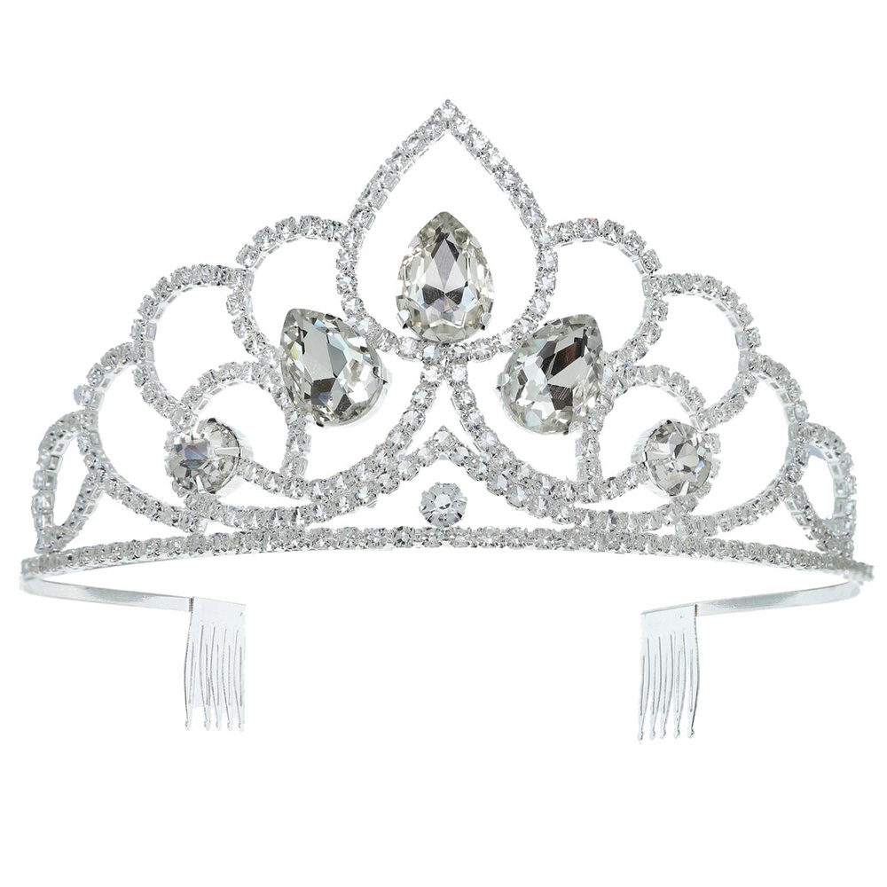 CRYSTAL RHINESTONE TEARDROP PRINCESS COMB TIARA