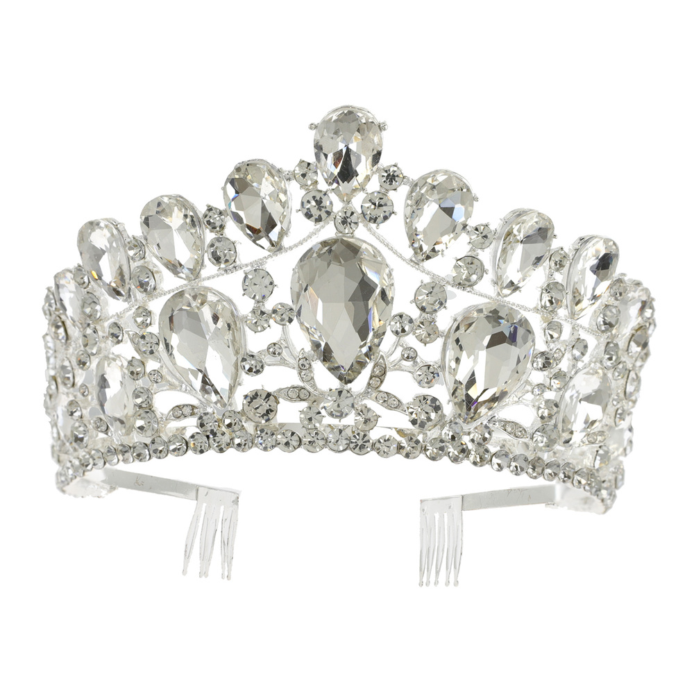 Crystal Rhinestone Pave Teardrop Cluster Tiara With Comb