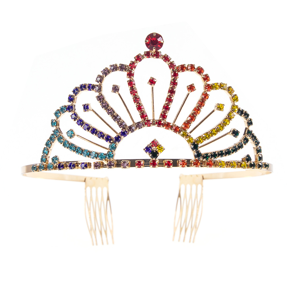 Scalloped Rainbow Multicolor Crystal Rhinestone Tiaras