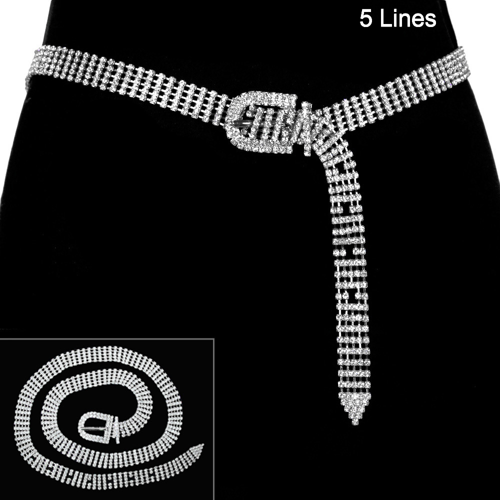 5 Line Rhinestone Belt W/ Rhinestone Buckle