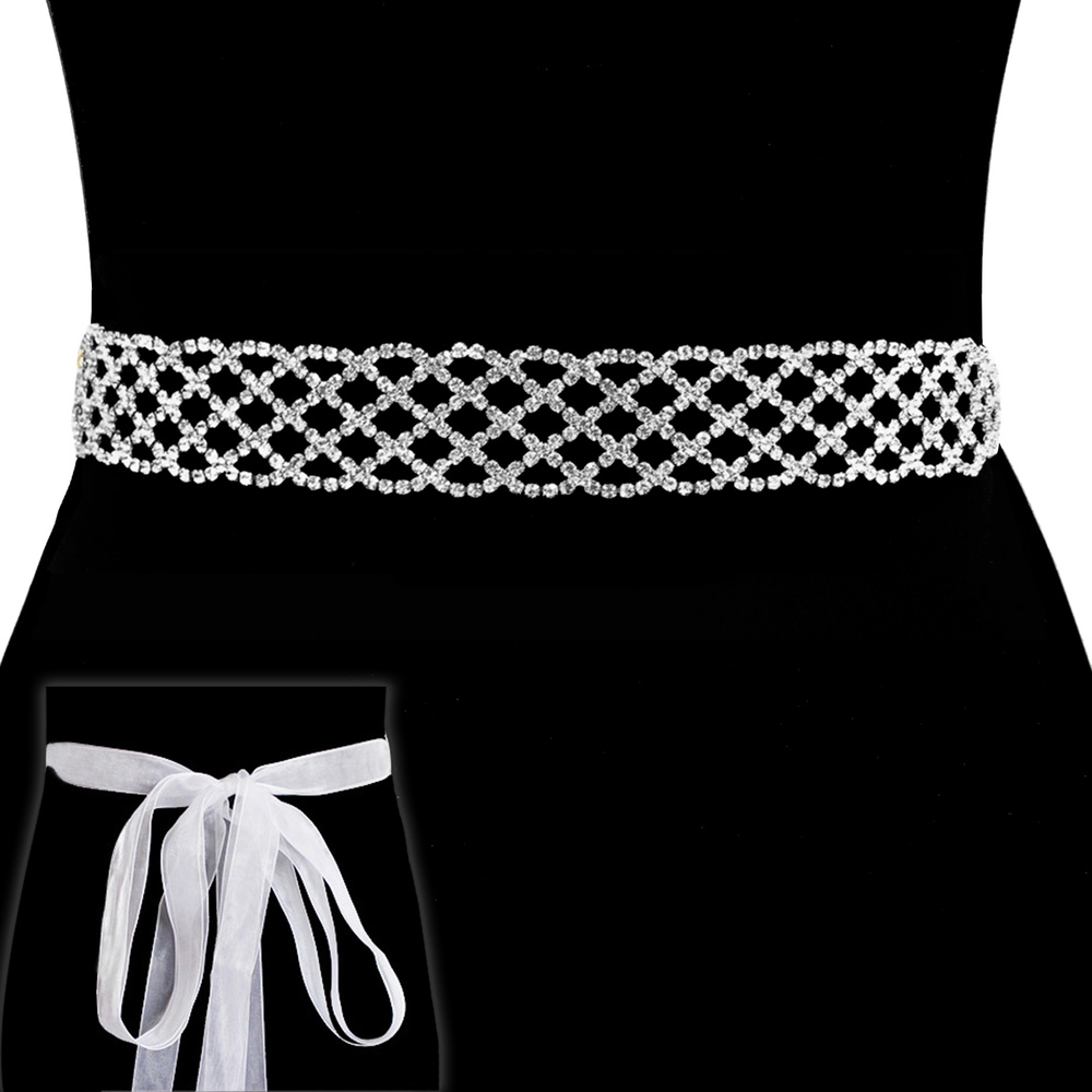 Clear Pretty Wedding Sash Tie Belt W/ Rhinestones