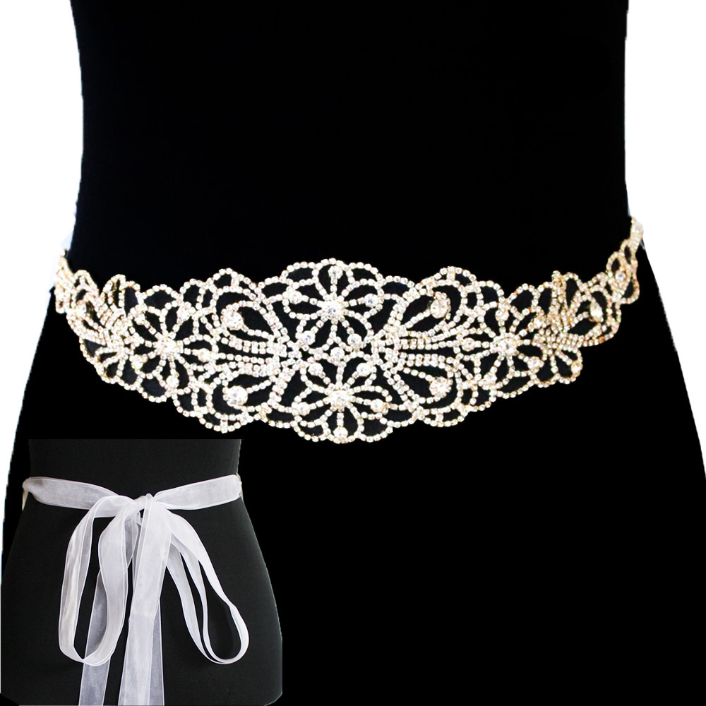 Extra Wide Rhinestone Wedding Tie Sash Belt