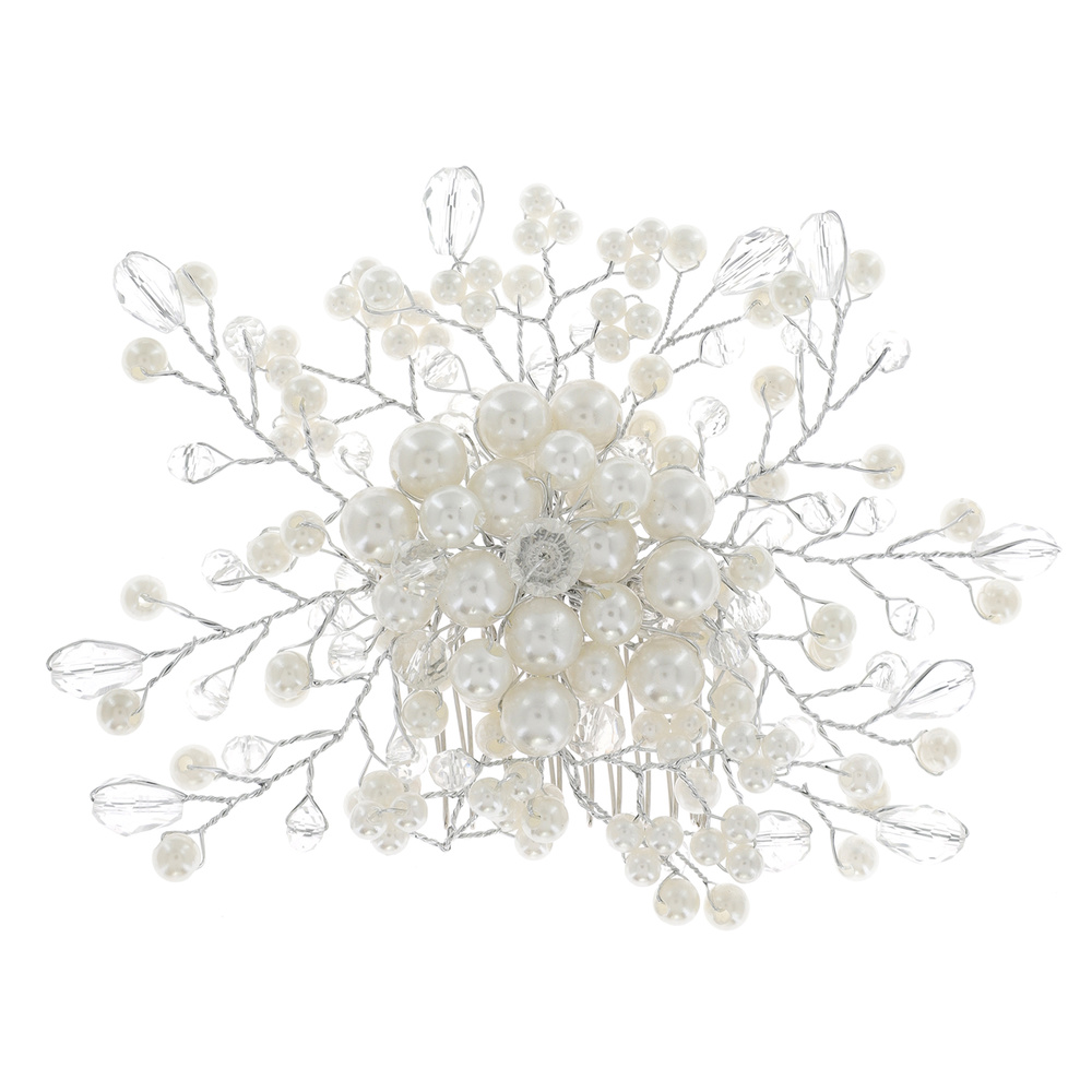 CRYSTAL AND PEARL FLORAL SIDE COMB