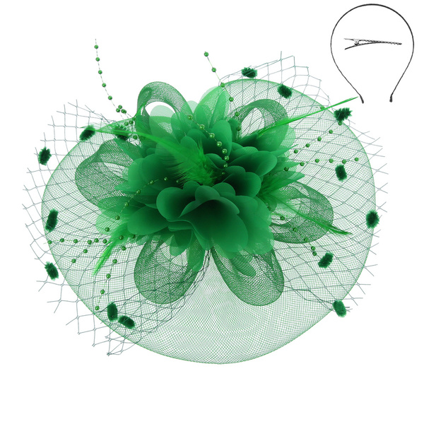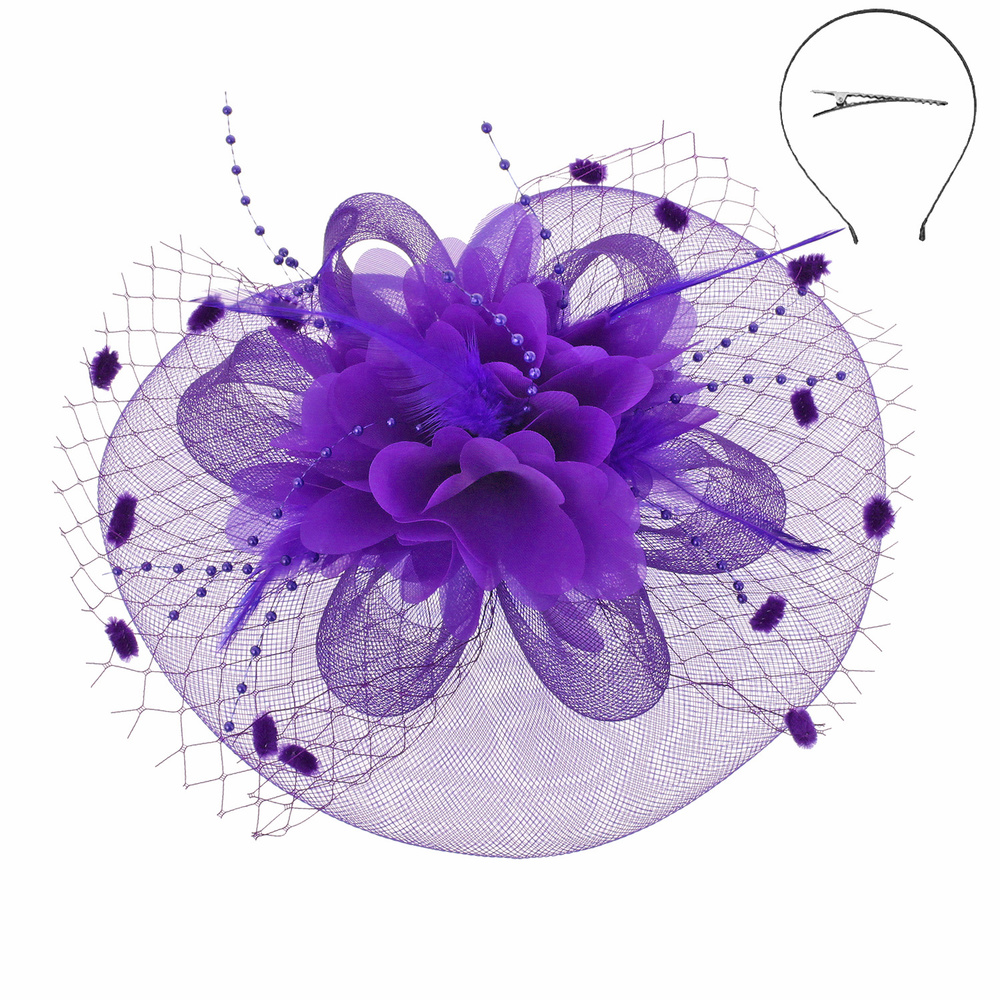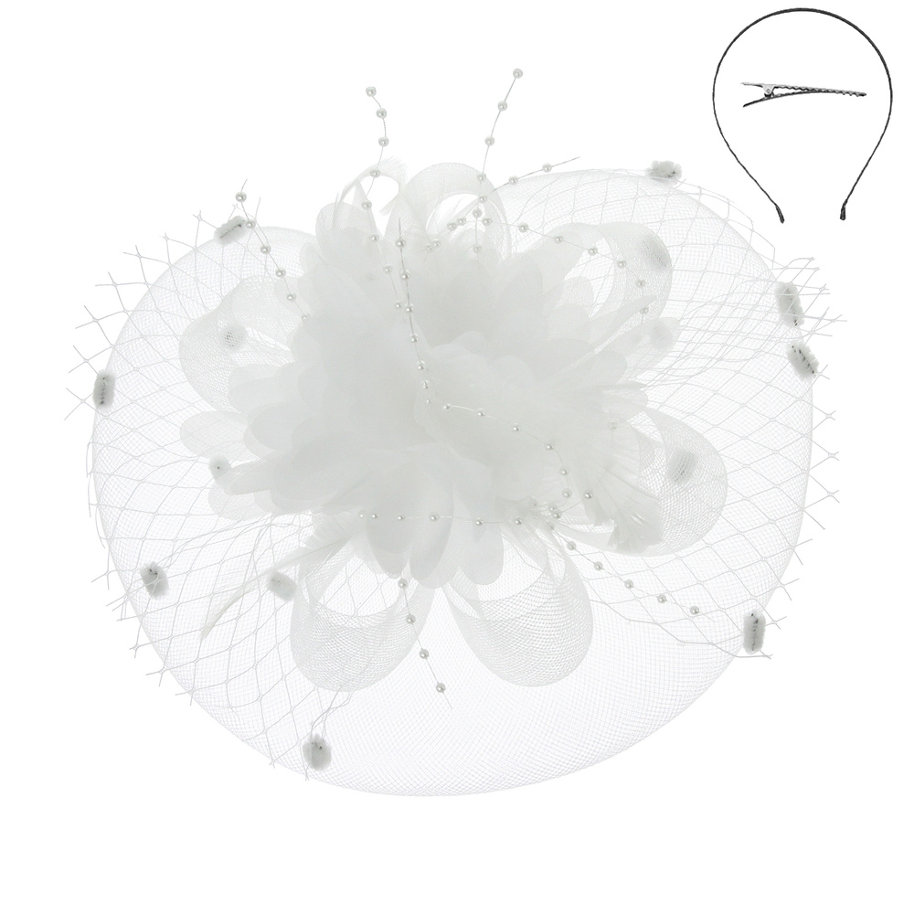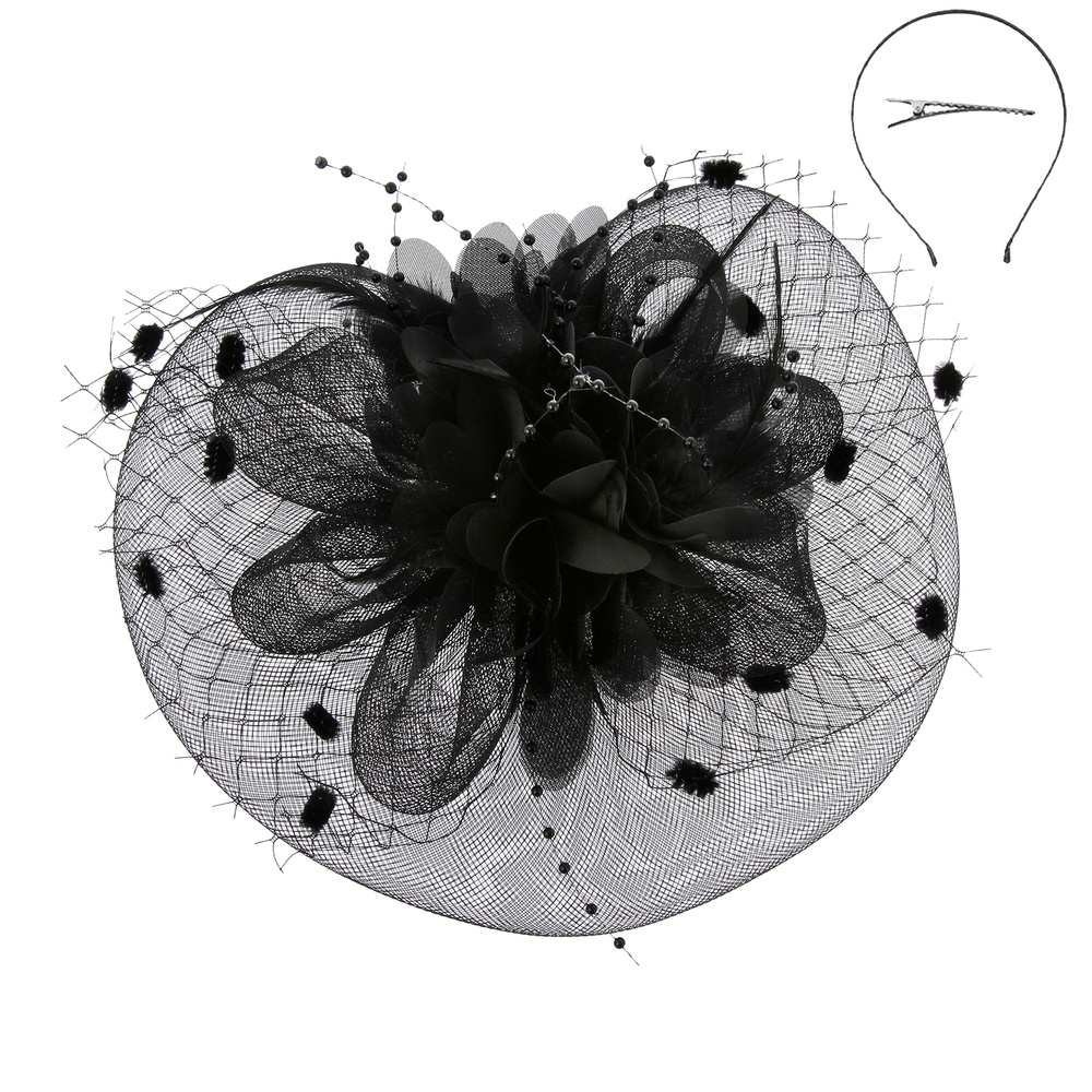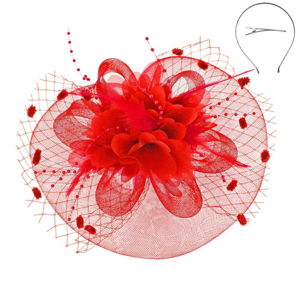 SATIN FLOWER MESH VEIL FASCINATOR DETACHABLE HEADBAND INCLUDES HEADBAND AND CLIP