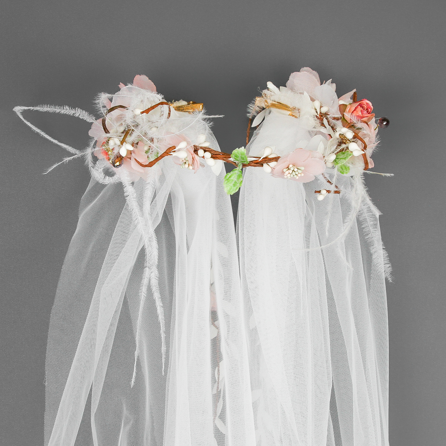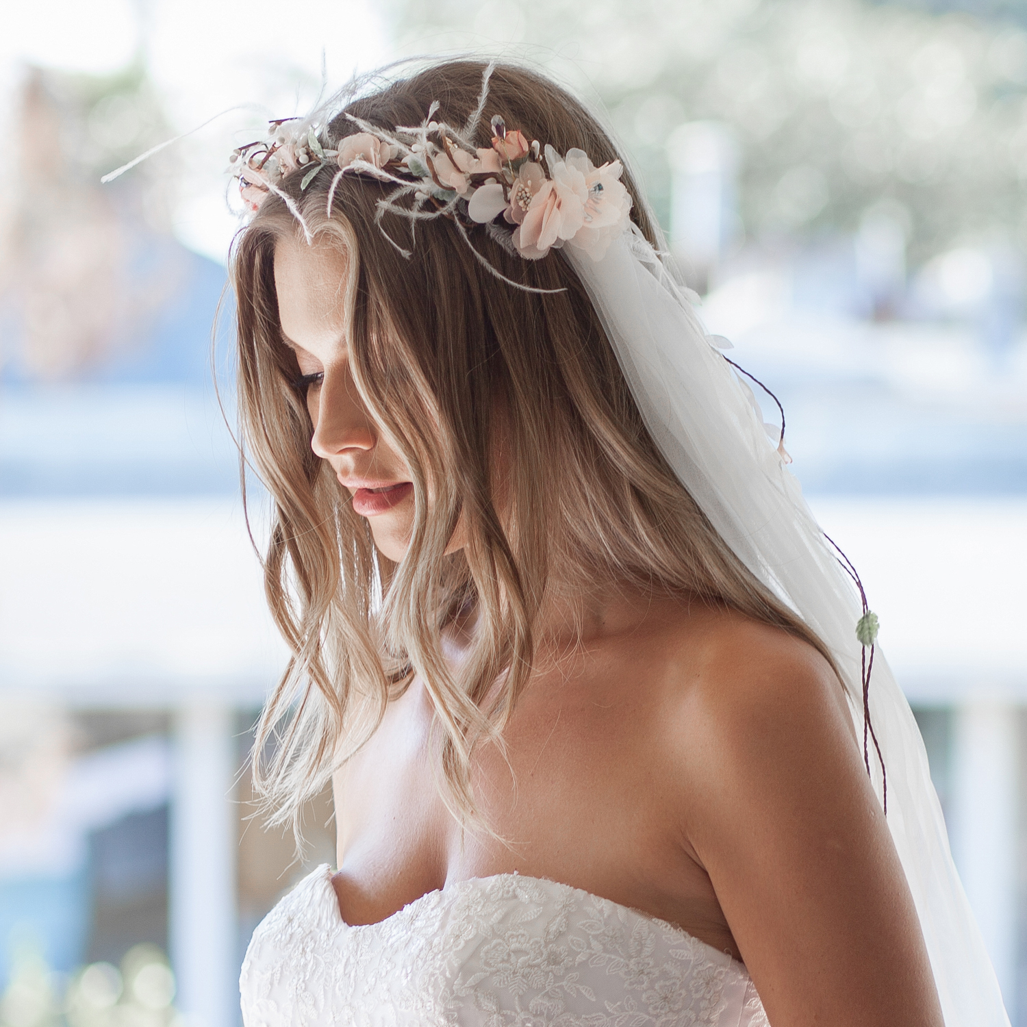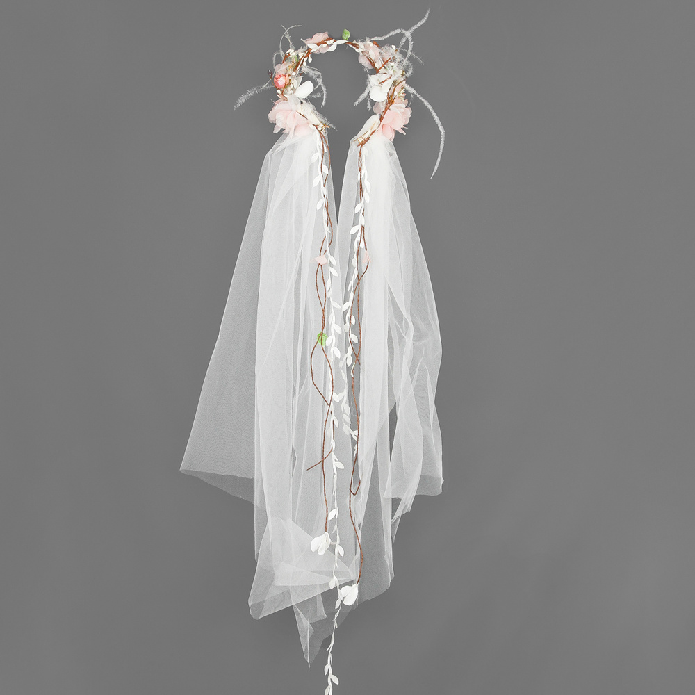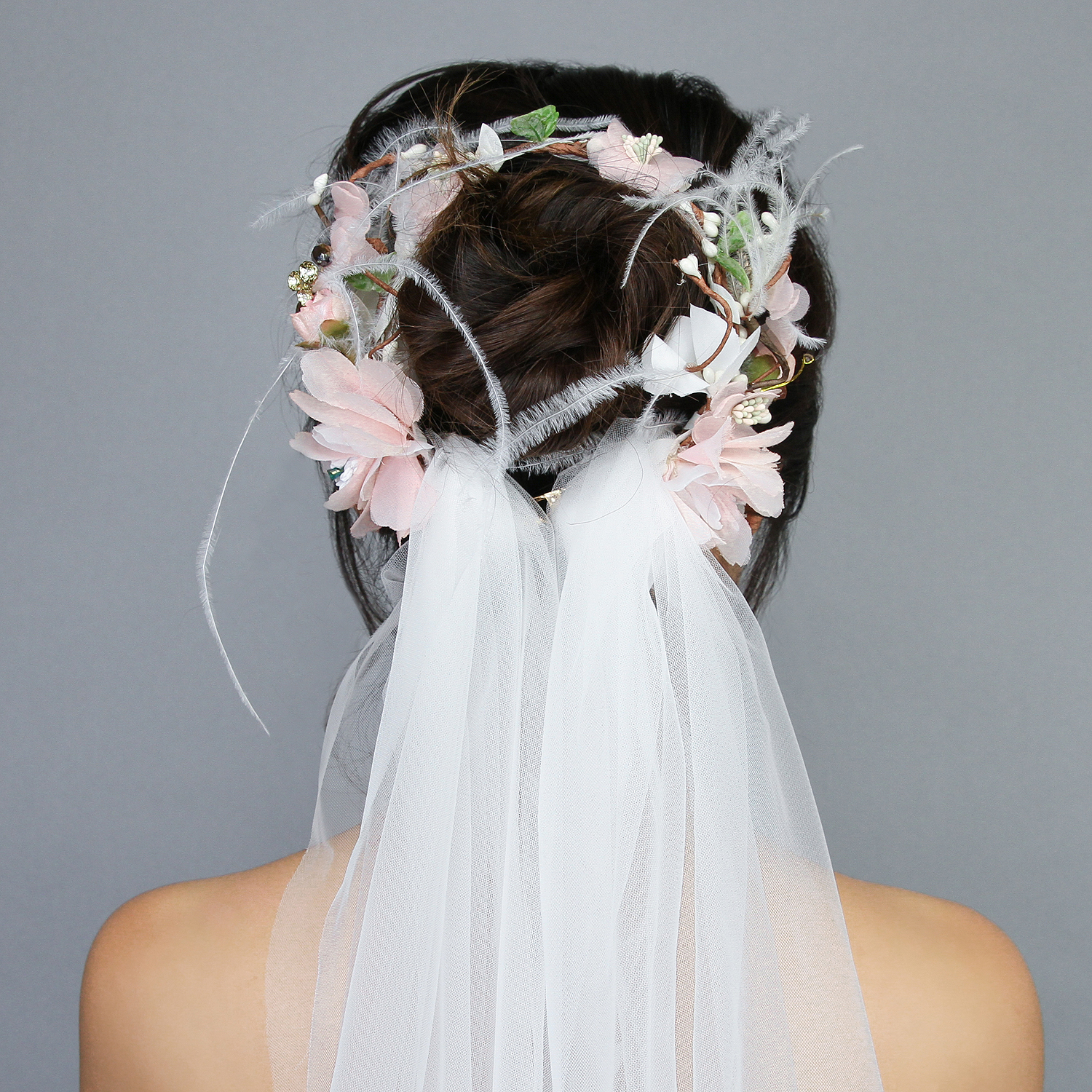 Bridal Floral Hair Veil W/ Wildflowers & Feathers
