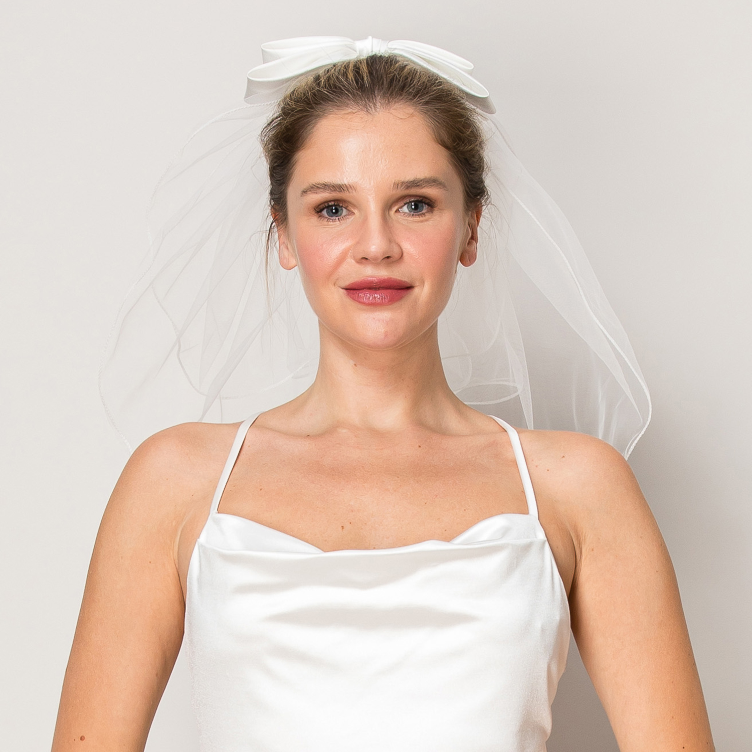 Bridal Wedding Bachelorette Short 2 Tier Bow Veil