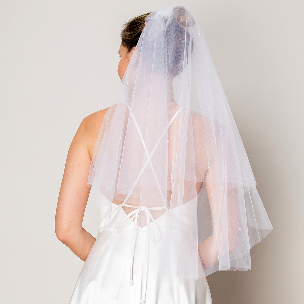 Bridal Wedding Bachelorette 2 Tiers Pearl Veil