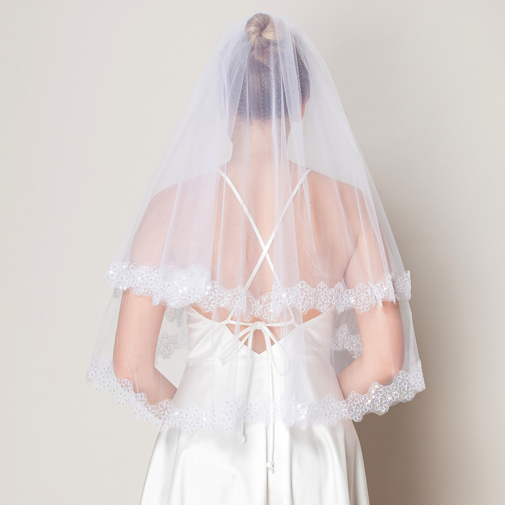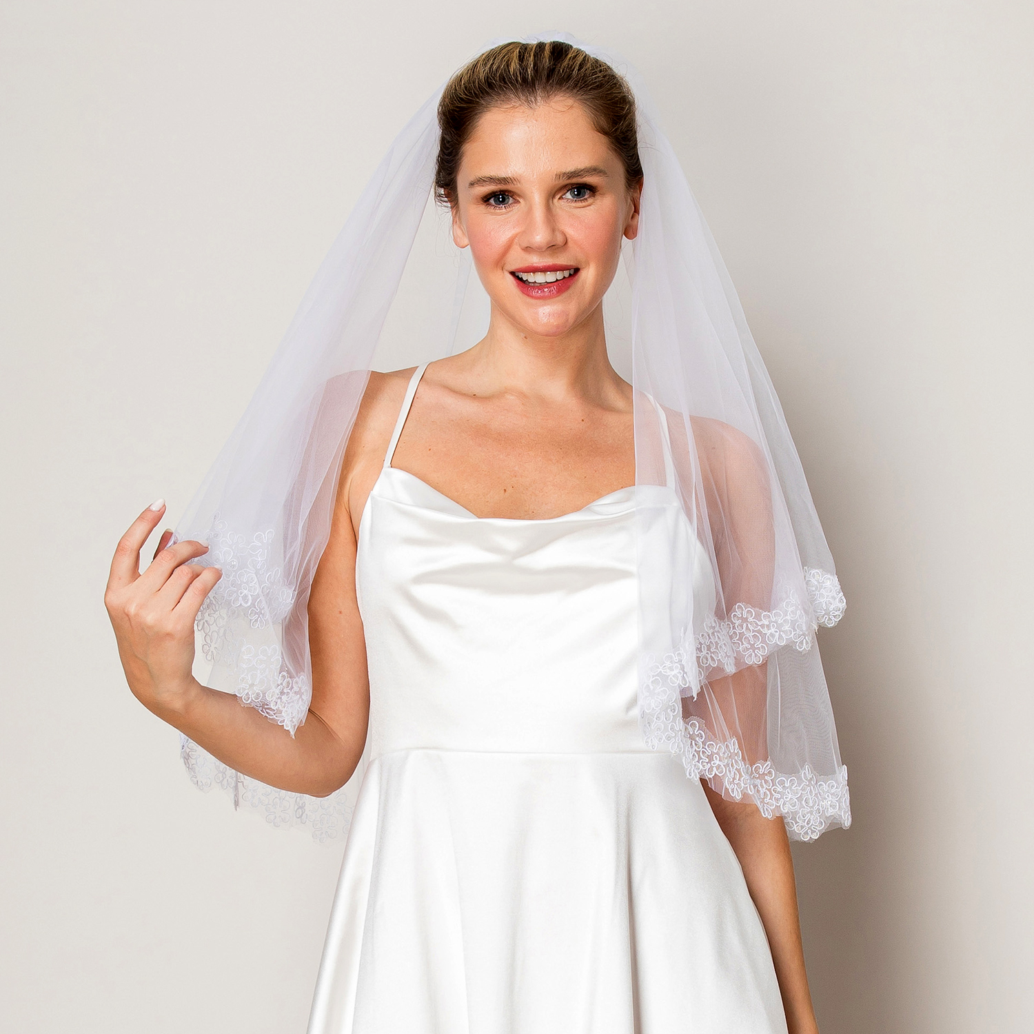 Bridal Wedding Bachelorette 2 Tiers Floral Lace Edge Veil