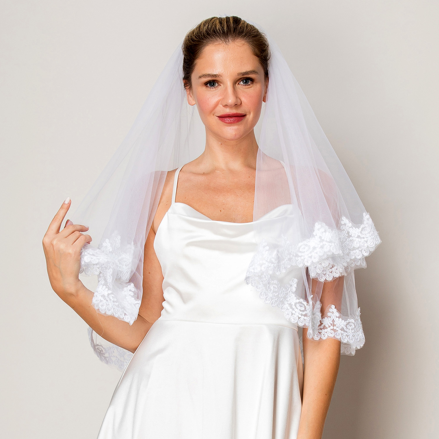 Bridal Wedding Bachelorette 2 Tiers Floral Lace Edge Veil
