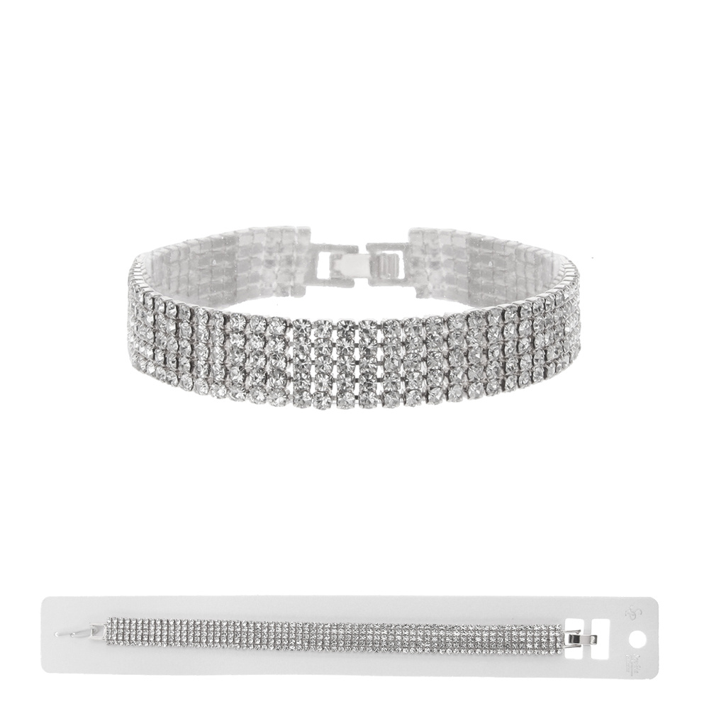 5 LINE RHINESTONE CLASP BRACELET W/GEMS