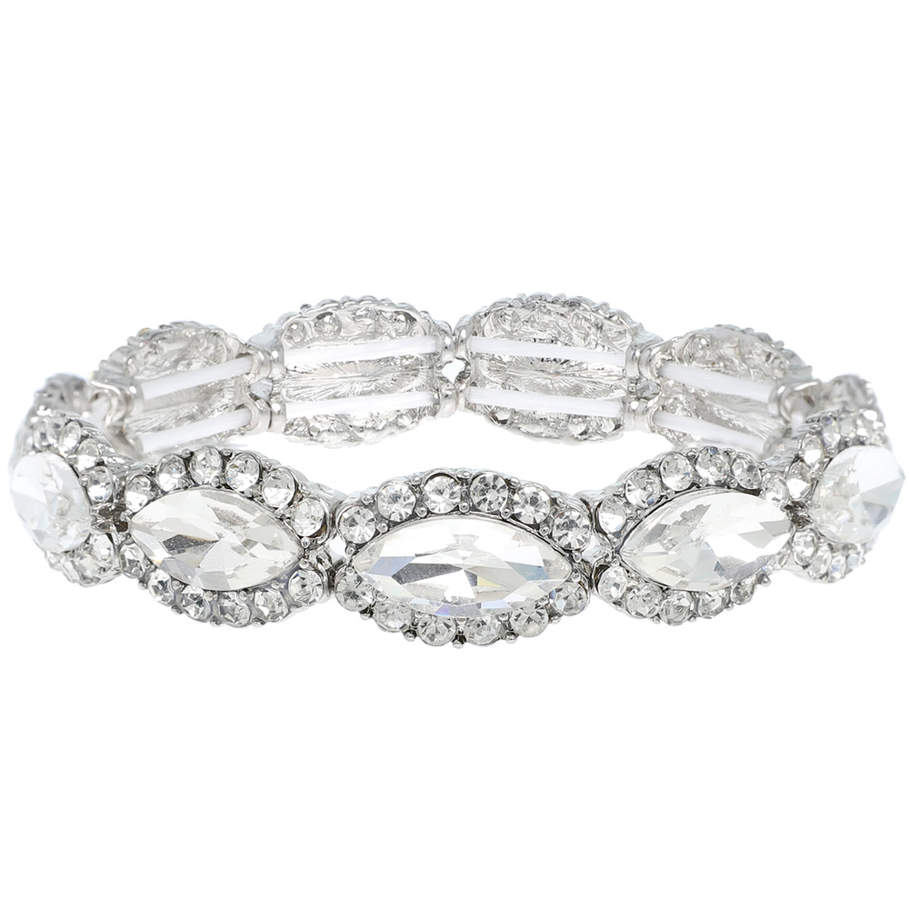 RHINESTONE BEZELED MARQUISE CUT CRYSTAL STRETCH BRACELET