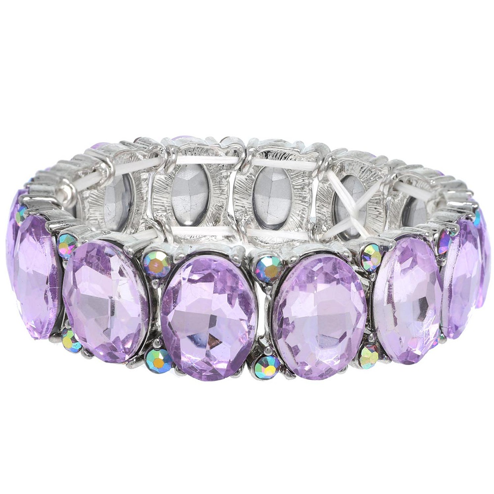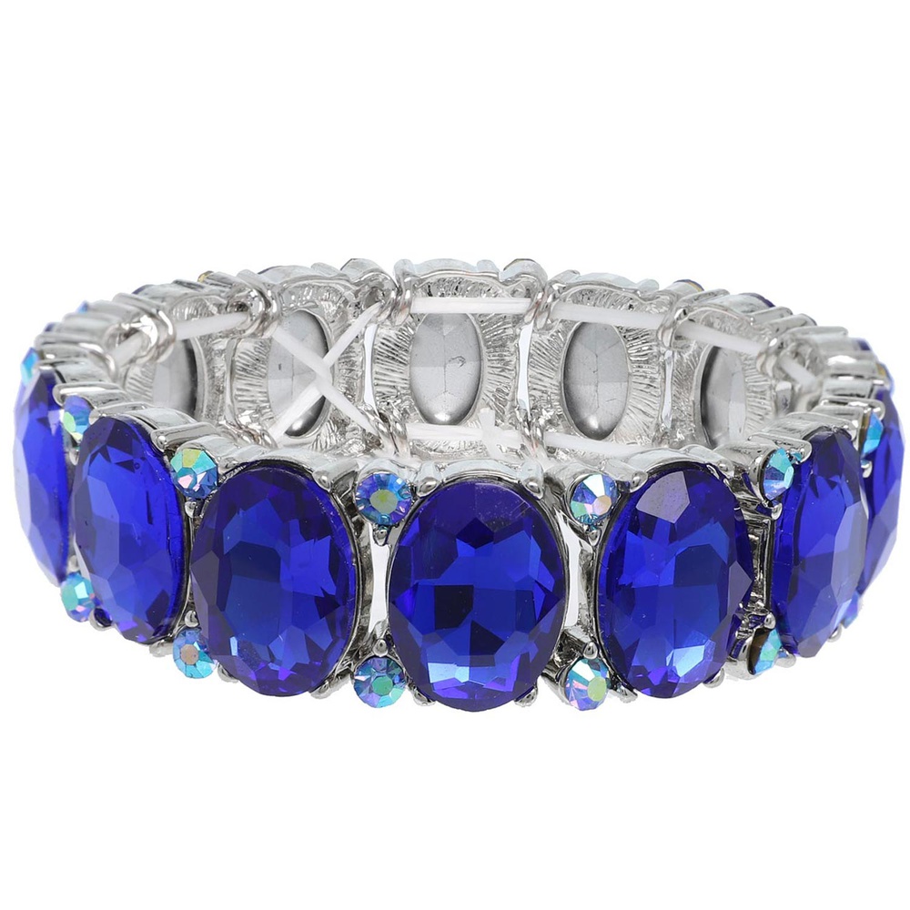 CRYSTAL GEMSTONE OVAL CUT CLUSTER STRETCH BANGLE BRACELET