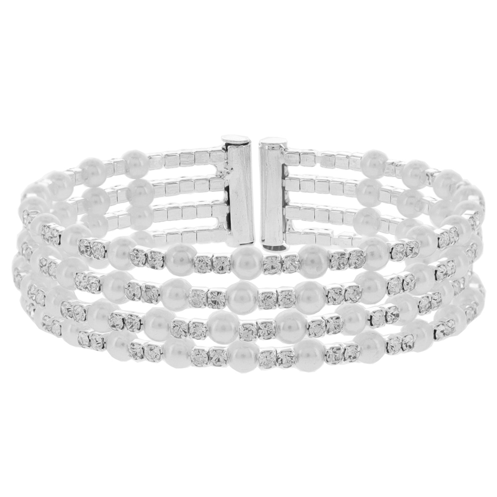 Bridal 4-line Synthetic Pearl Rhinestone Cuff Bracelet