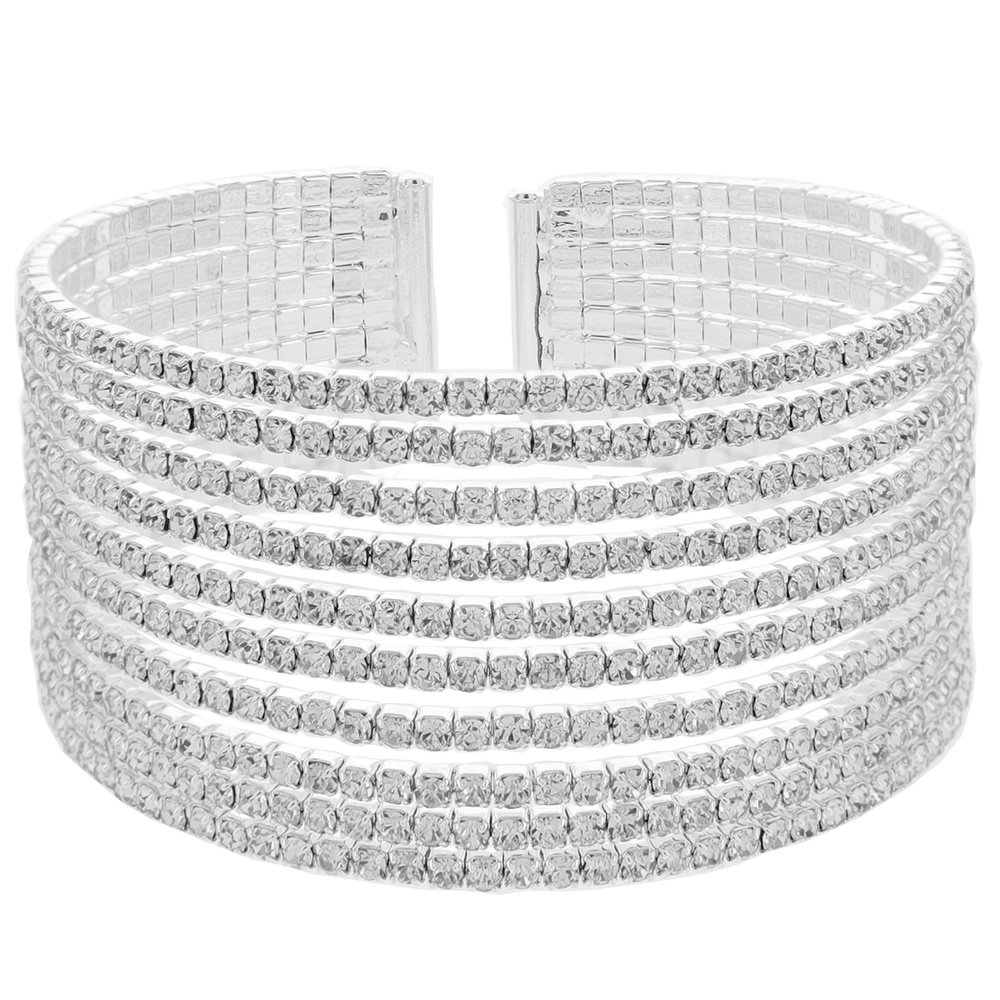 BRIDAL 10-LINE CRYSTAL RHINESTONE CUFF BRACELET