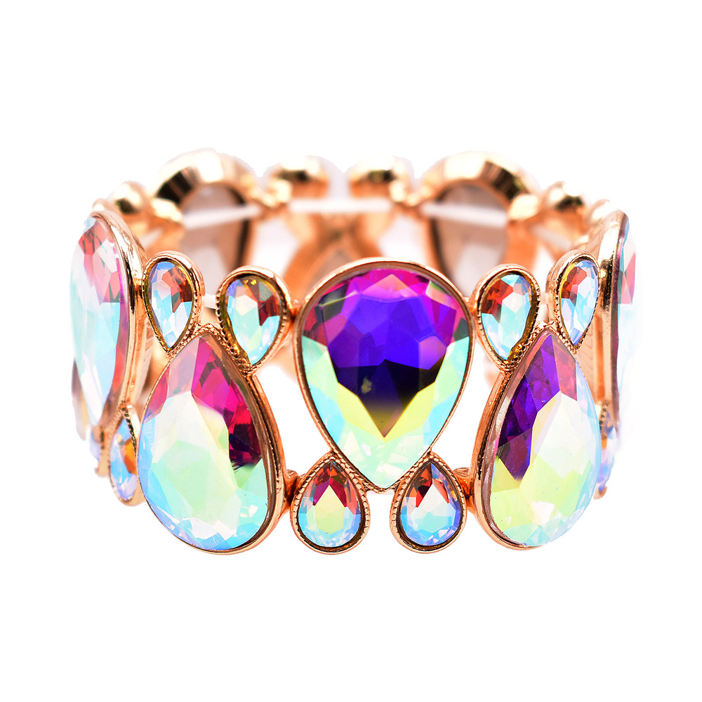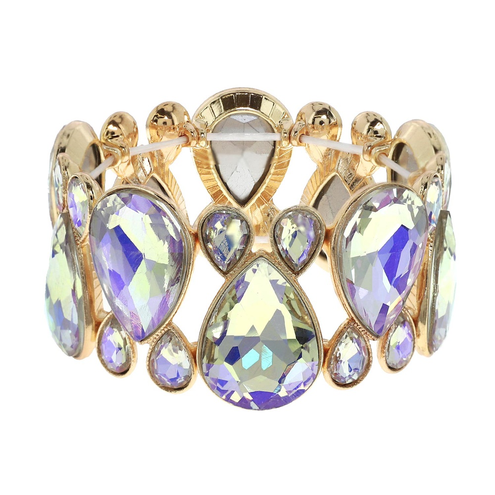Crystal Rhinestone Teardrop Cluster Stretch Bangle Bracelet