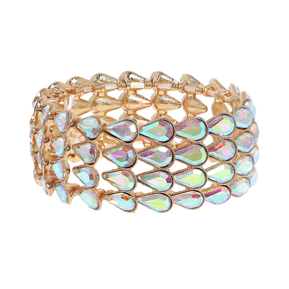 4-ROW CRYSTAL RHINESTONE TEARDROP STRETCH BANGLE BRACELET