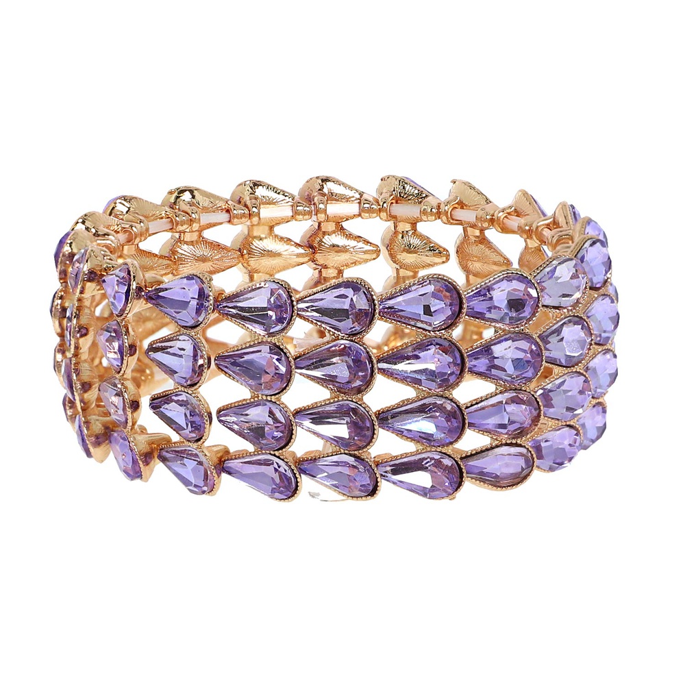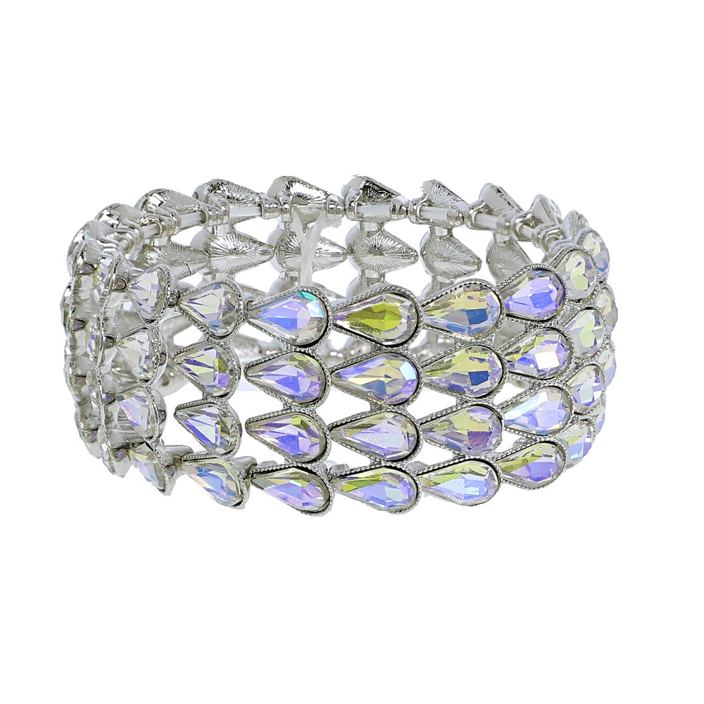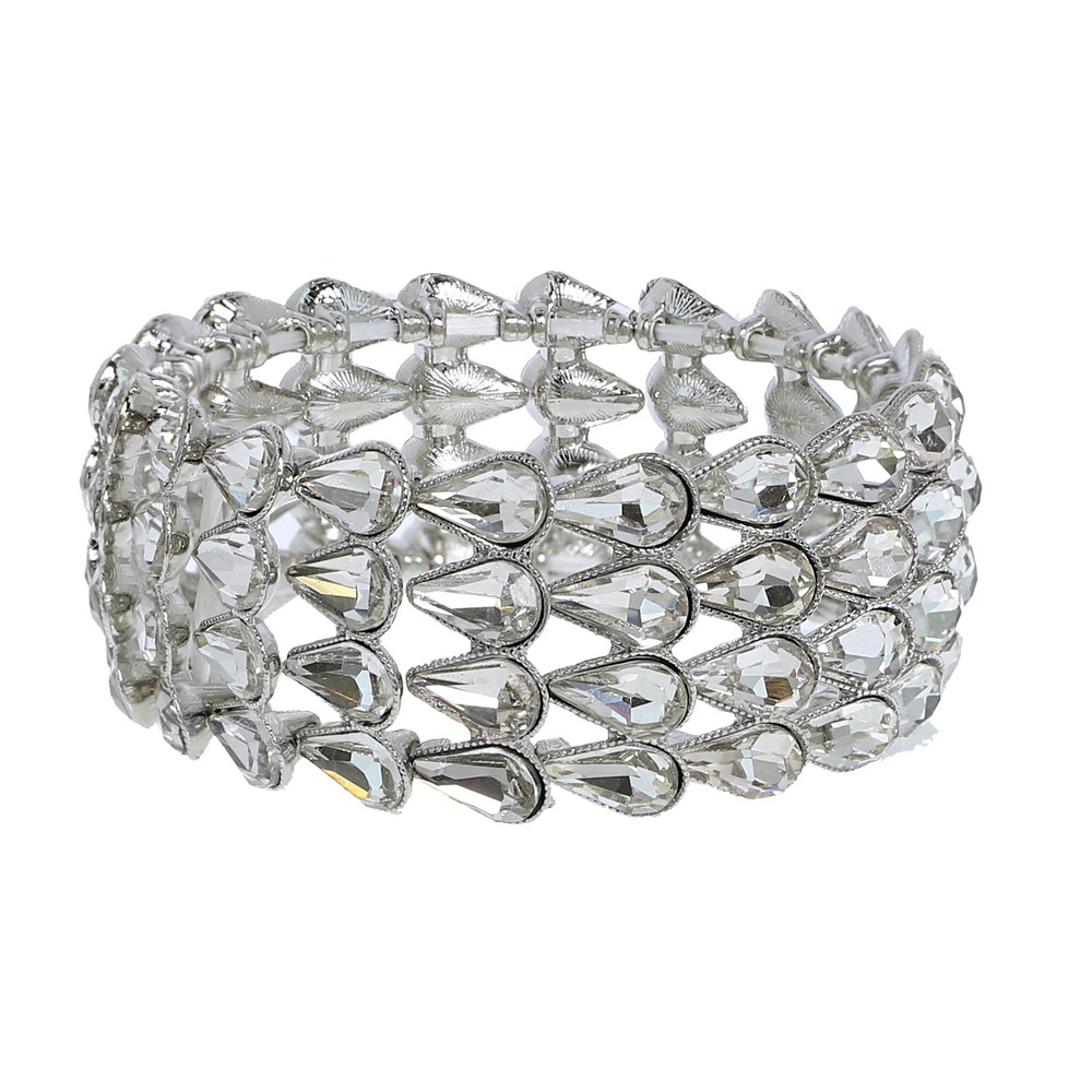 4-row Crystal Rhinestone Teardrop Stretch Bangle Bracelet