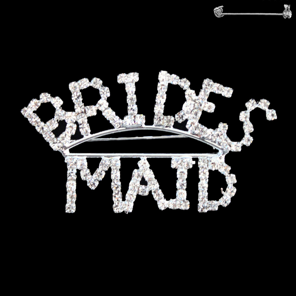 Wedding Novelty Rhinestone Text "brides Maid" Brooch Pin