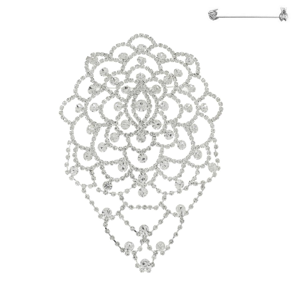 Floral Bridal Crystal Rhinestone Pave Dangle Brooch Pin
