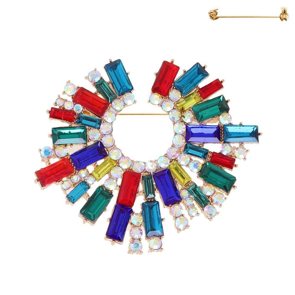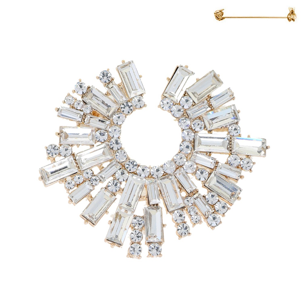 CRYSTAL RHINESTONE BAGUETTE CLUSTER BROOCH PIN