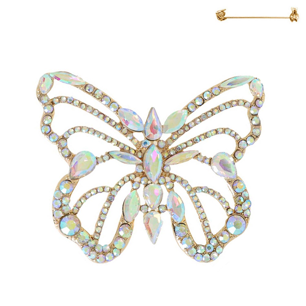 Crystal Rhinestone Butterfly Filigree Brooch Pin