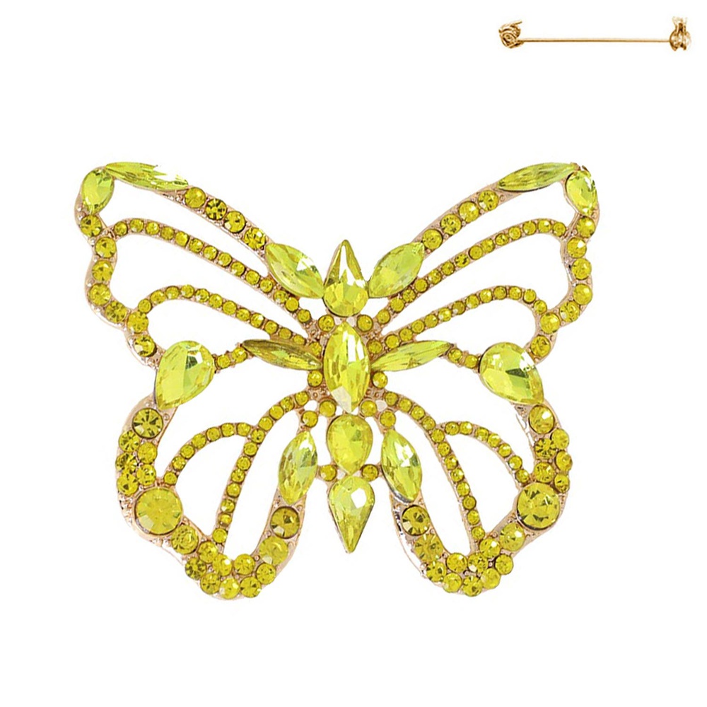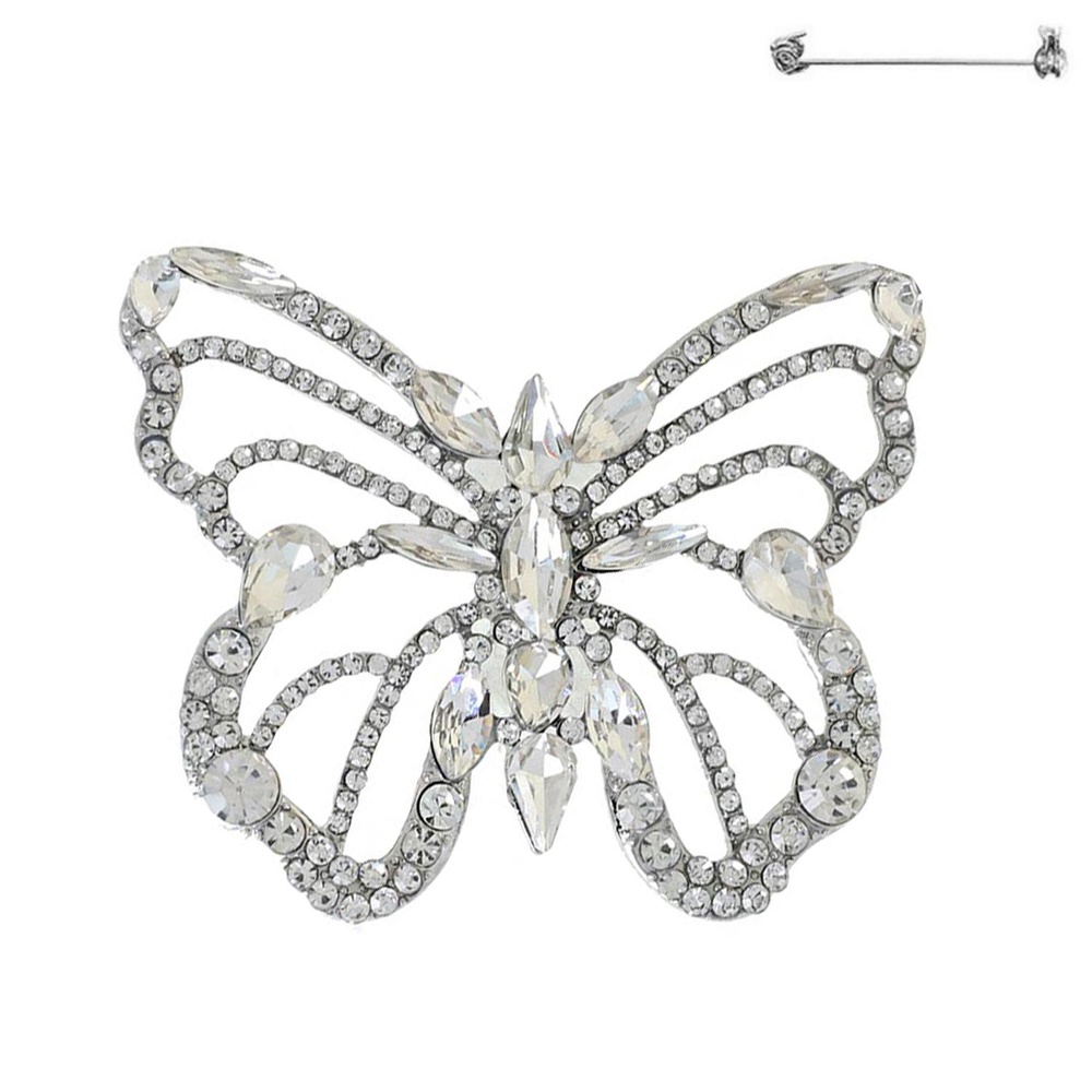 CRYSTAL RHINESTONE BUTTERFLY FILIGREE BROOCH PIN