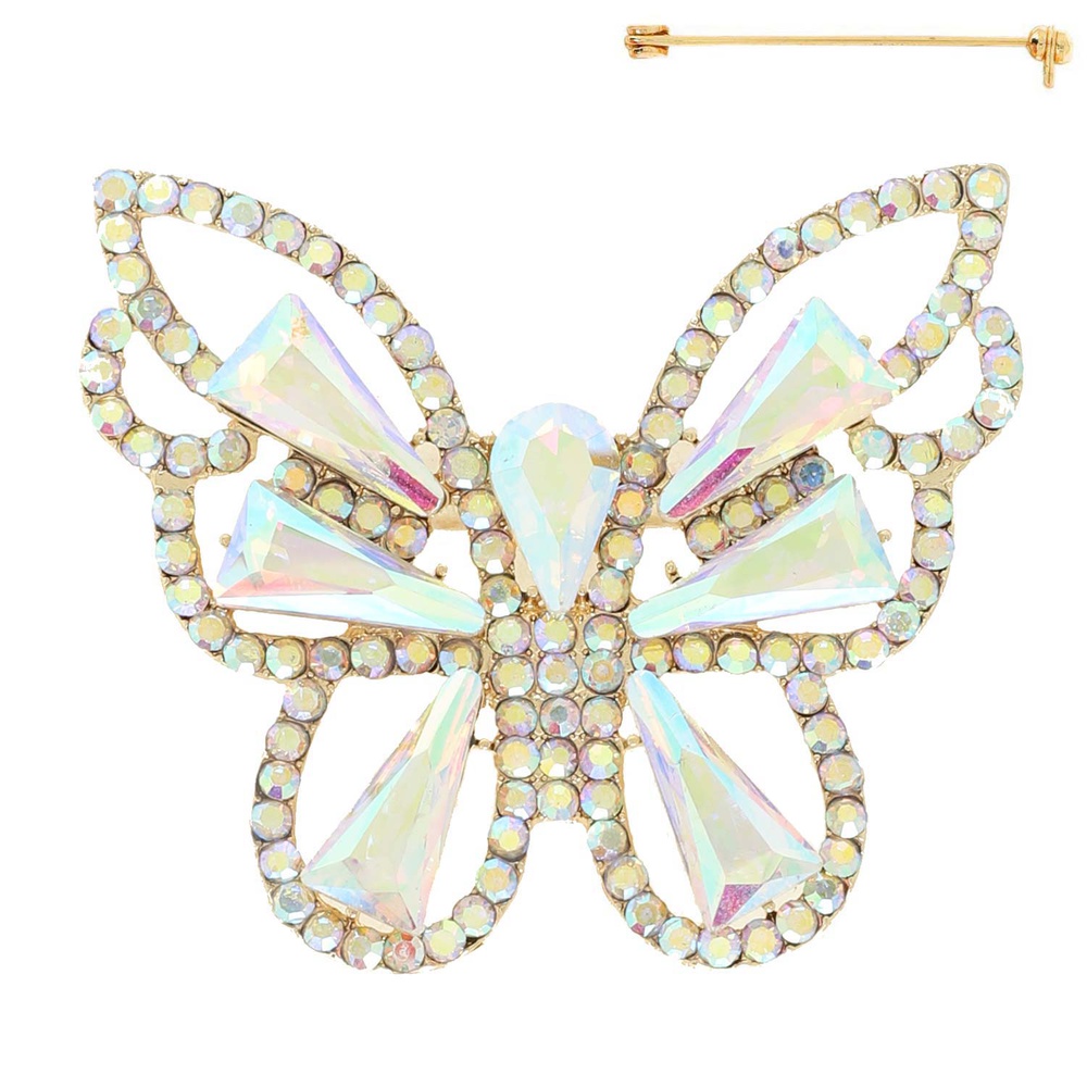 Vintage Crystal Gemstone Butterfly Brooch Pin