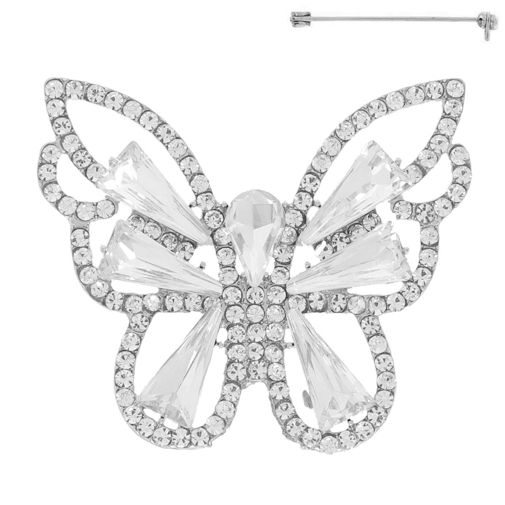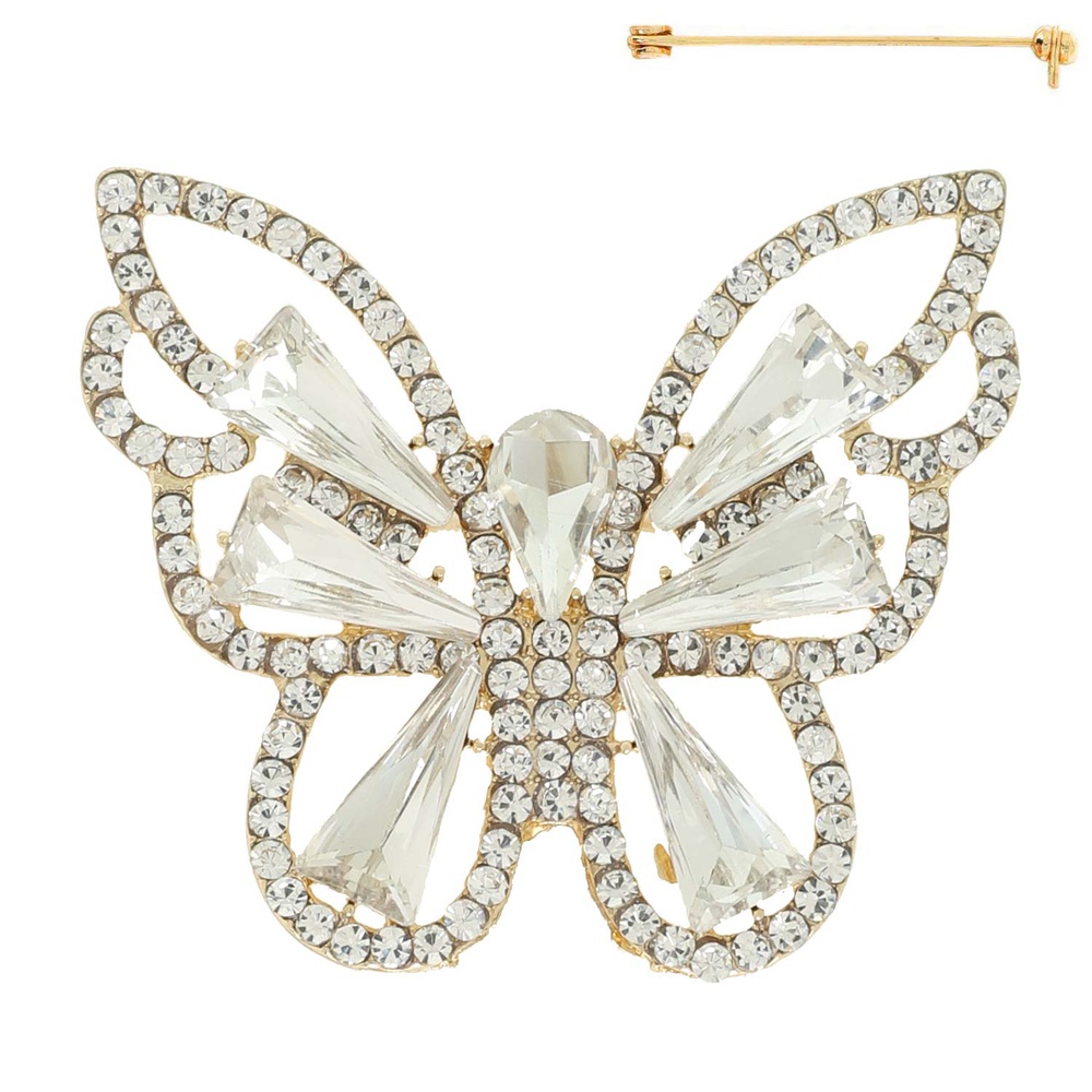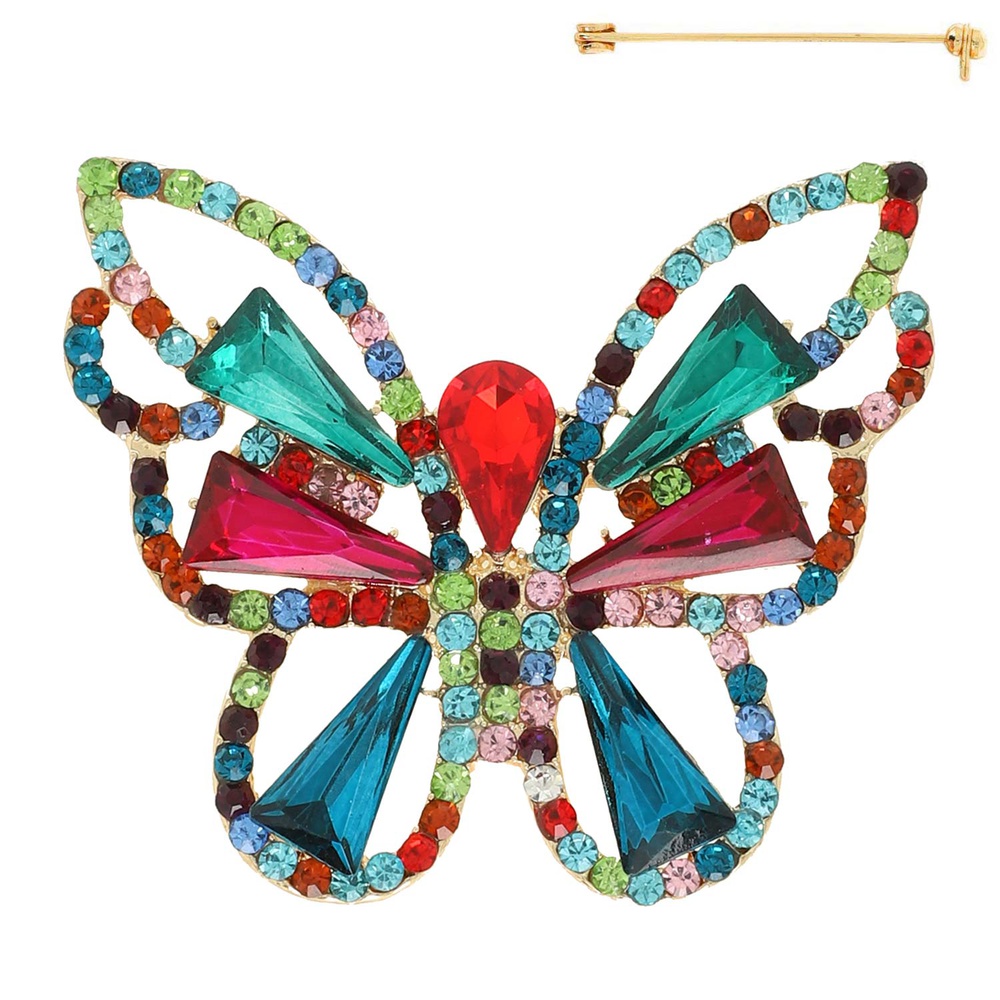 VINTAGE CRYSTAL GEMSTONE JEWELED BUTTERFLY BROOCH PIN