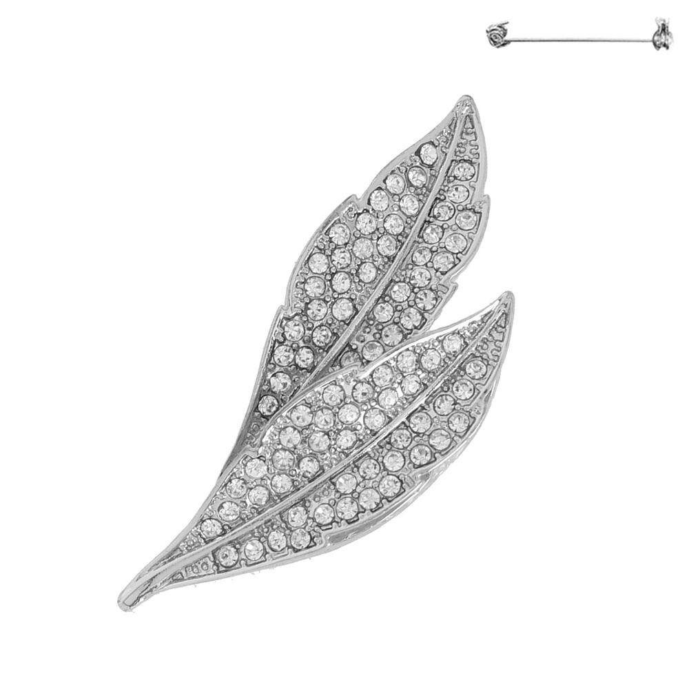 Crystal Rhinestone Double Leaf Brooch Pin