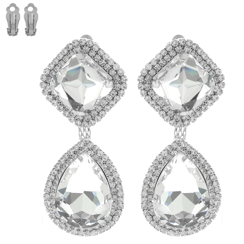 2-tier Rhinestone Halo Clip On Drop Earrings In Gold And Silver Tone Metal