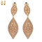 2-TIER LEAF SHAPED RHINESTONE & SYNTHETIC PEARL CLIP ON DANGLE AND DROP EARRINGS