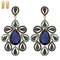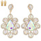LARGE 2-TIER CRYSTAL RHINESTONE PAVE TEARDROP FLORAL CLUSTER DANGLE AND DROP CLIP-ON EARRINGS