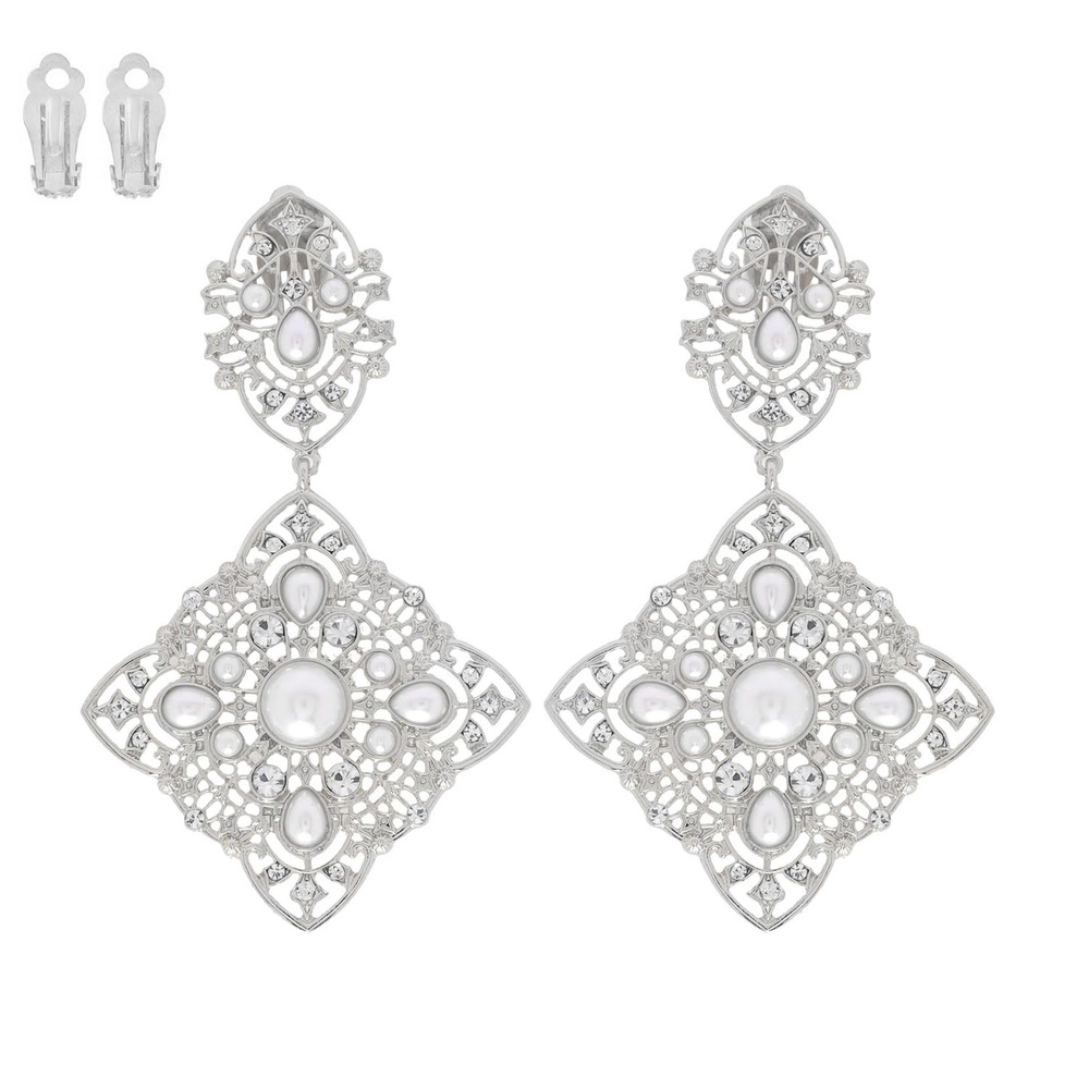 Baroque Filigree Crystal Clip-on Earrings