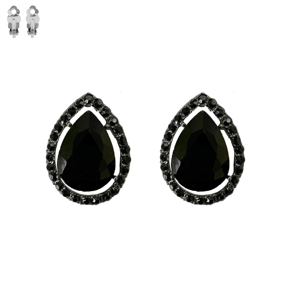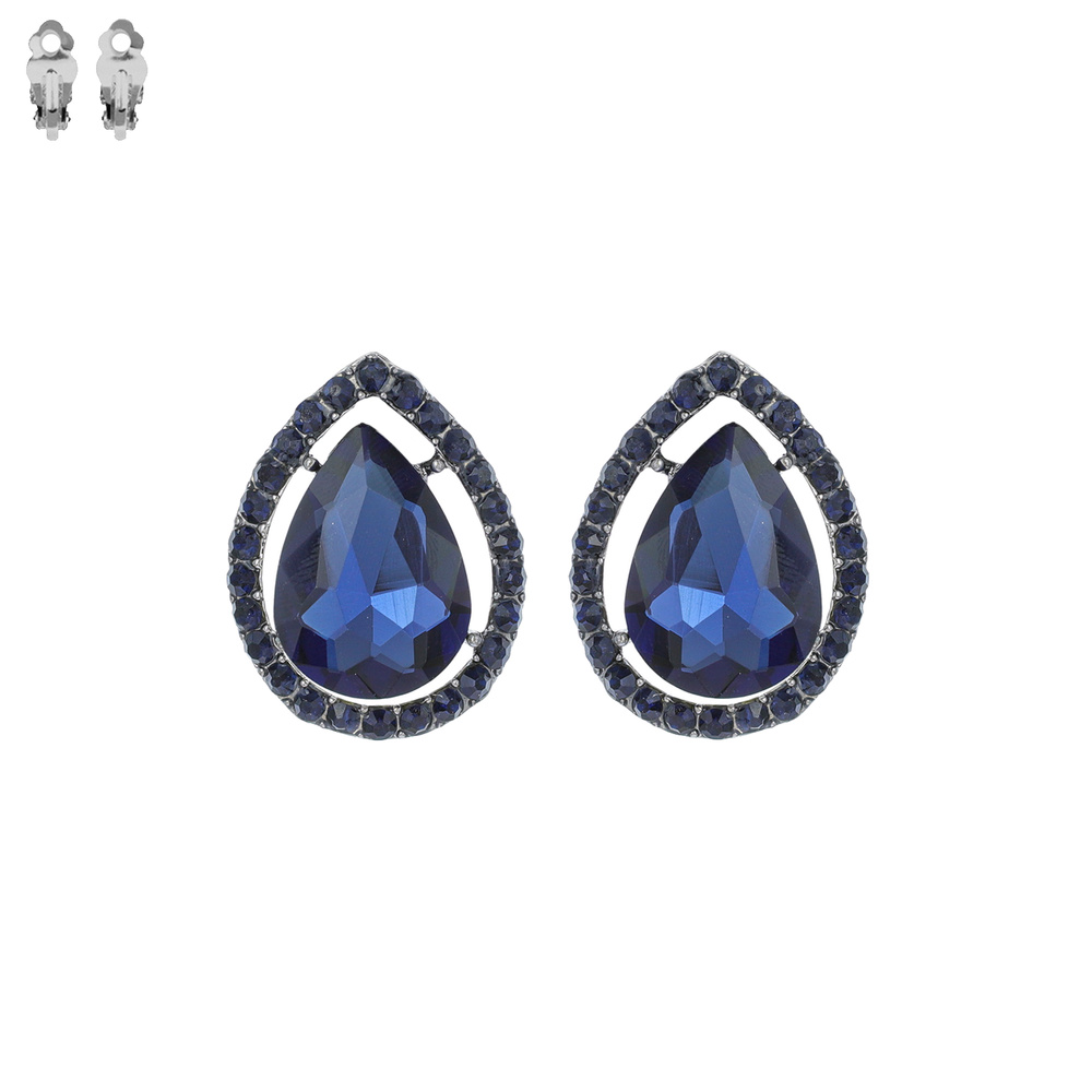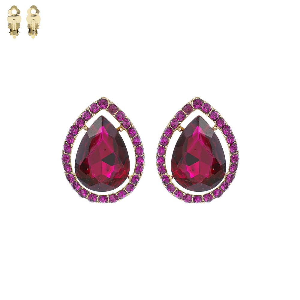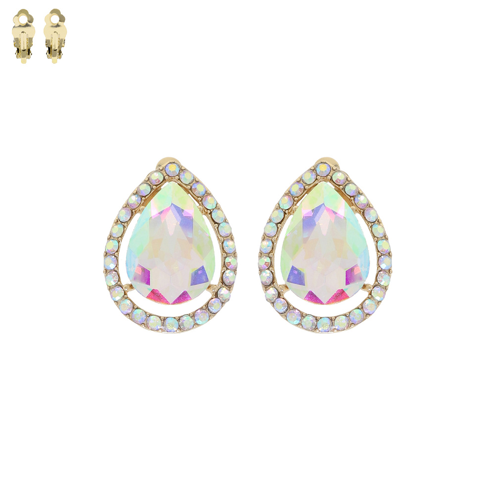 CRYSTAL RHINESTONE TEARDROP CUT HALO CLIP-ON EARRINGS