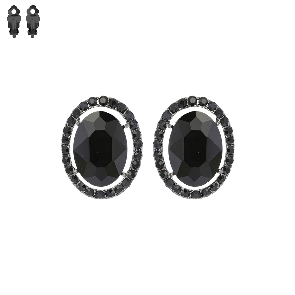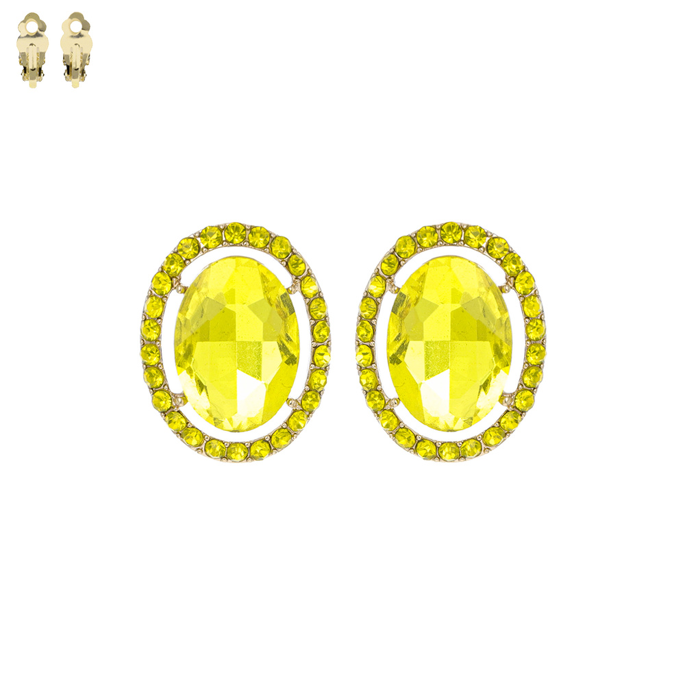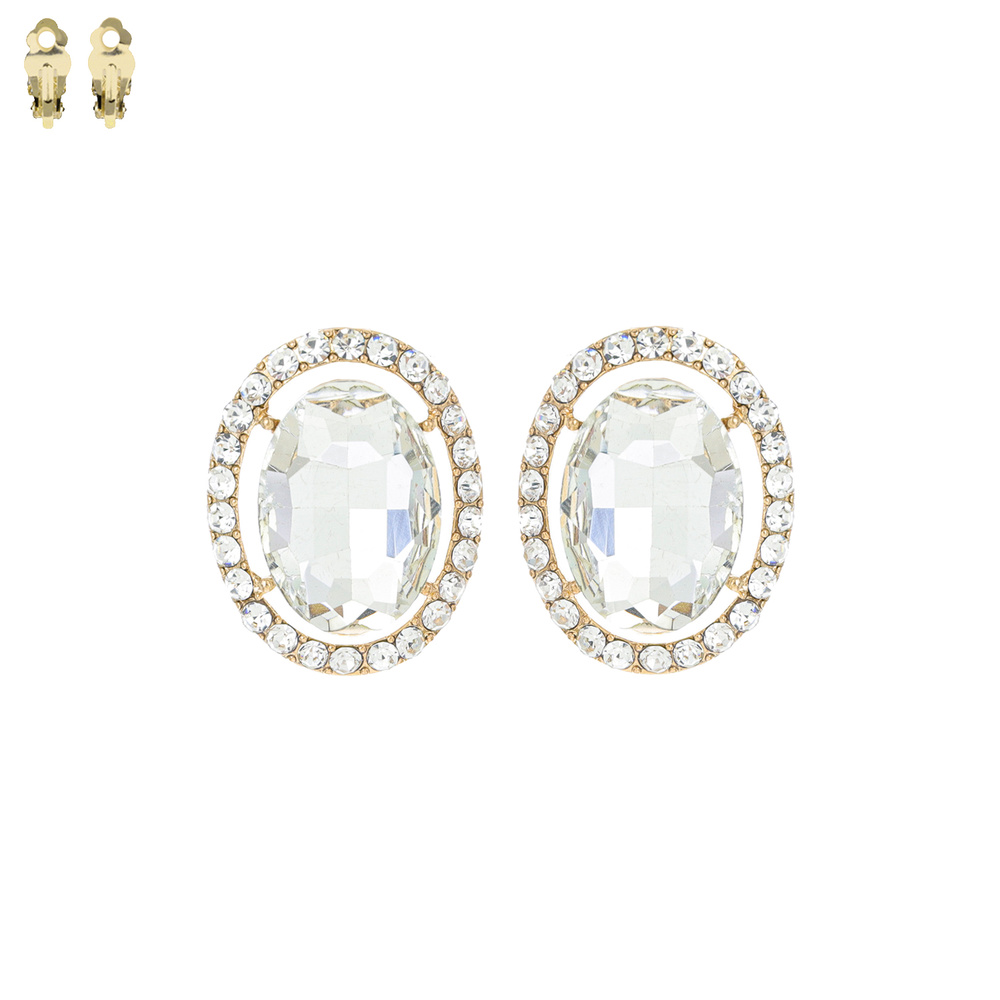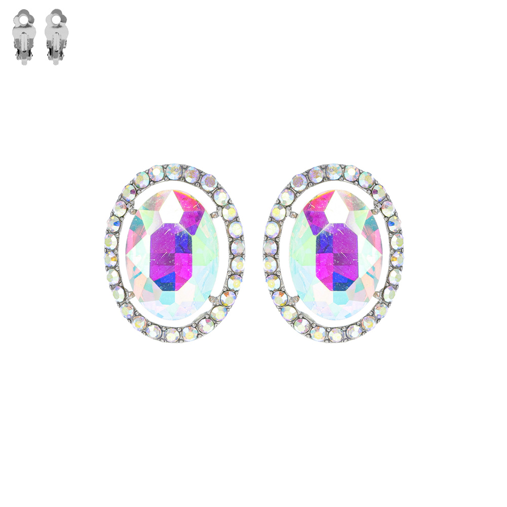 Crystal Gemstone Oval Cut Halo Clip-on Earrings