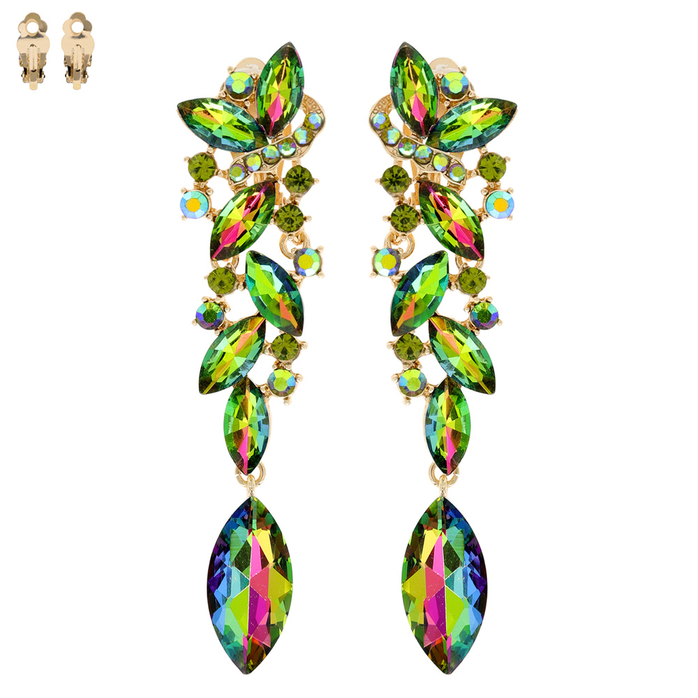 90S AESTHETIC BUTTERFLY PETAL CLUSTER CRYSTAL RHINESTONE CLIP-ON LONG DROP EARRINGS