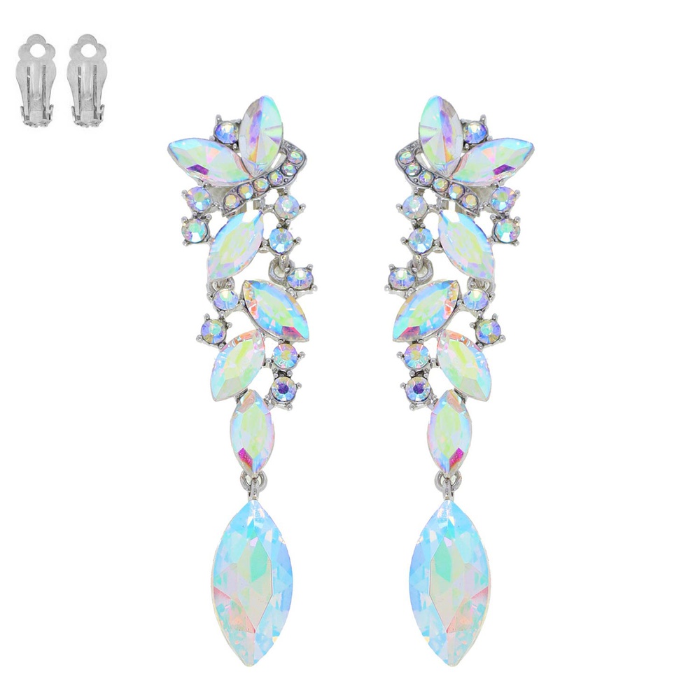 90S AESTHETIC BUTTERFLY PETAL CLUSTER CRYSTAL RHINESTONE CLIP-ON LONG DROP EARRINGS