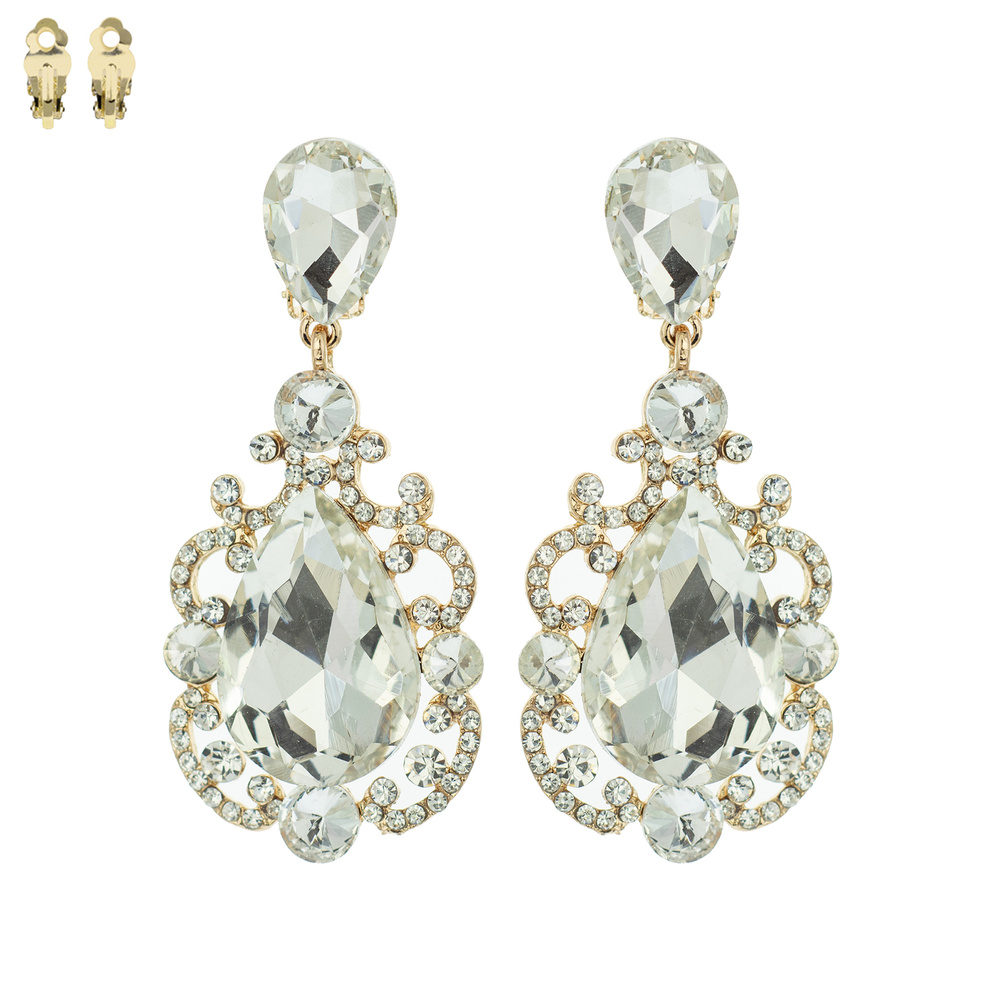 CHANDELIER STONE CLIP EARRING