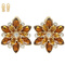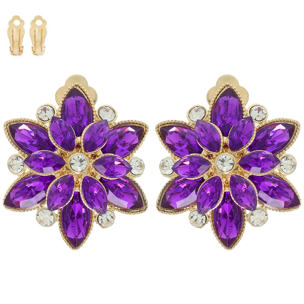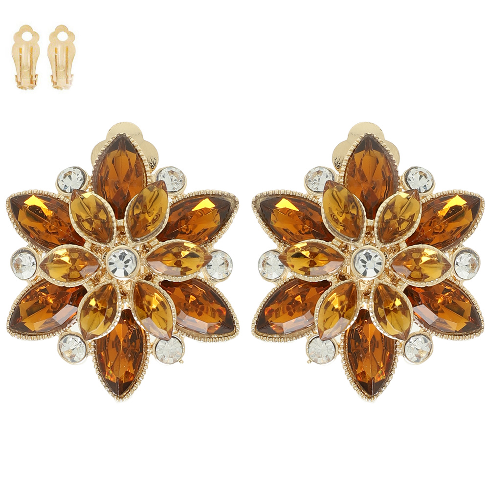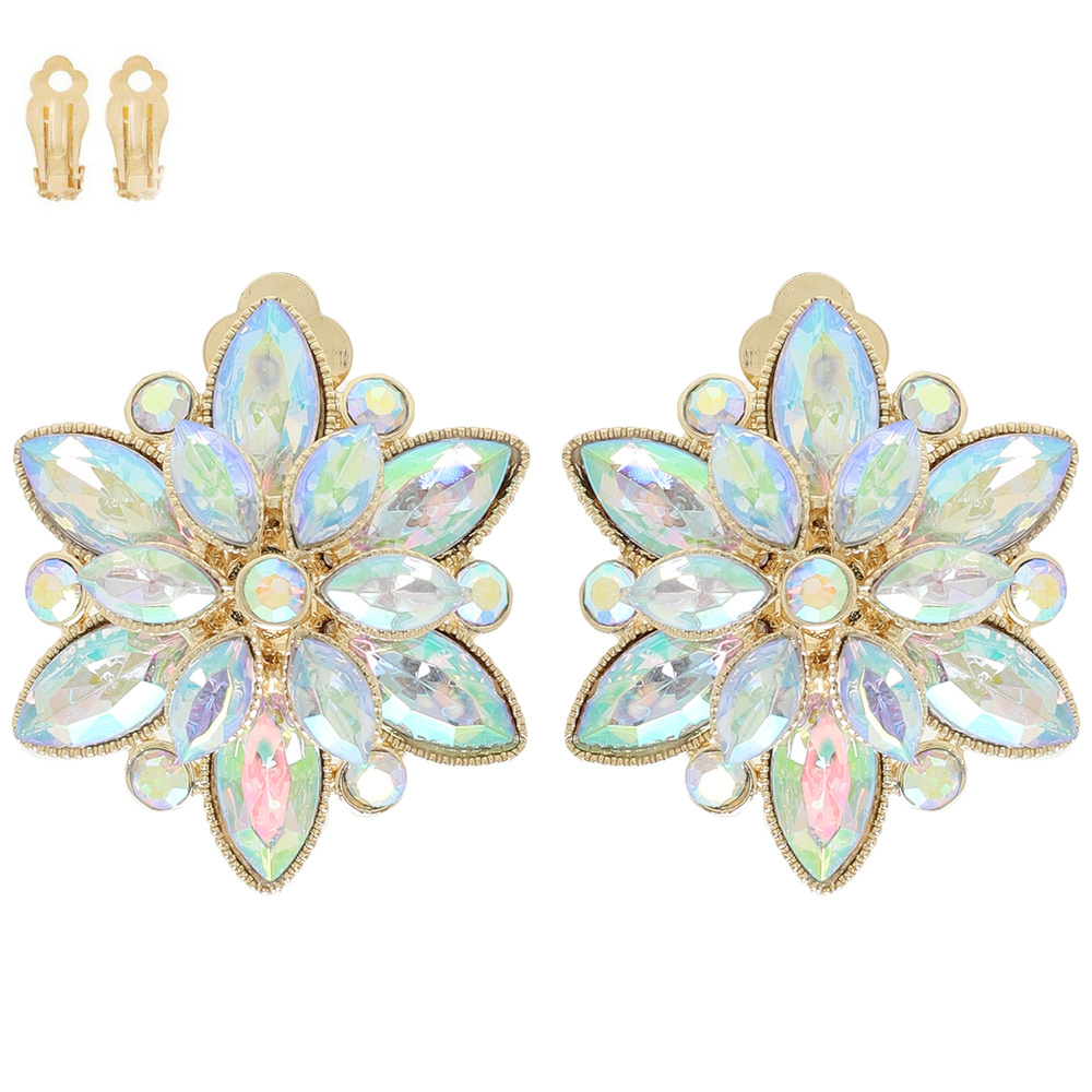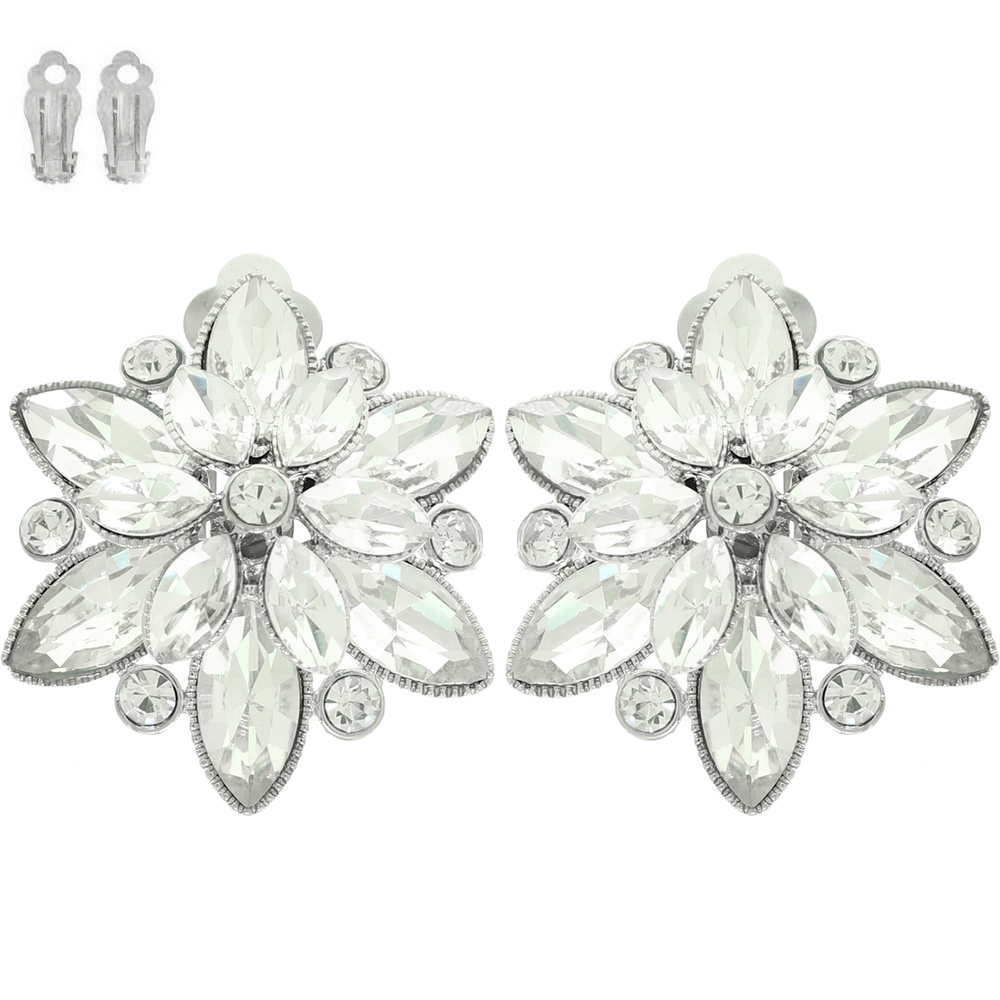 FLORAL NAVETTE AND ROUND-CUT CRYSTAL GEMSTONE CLIP-ON EARRINGS