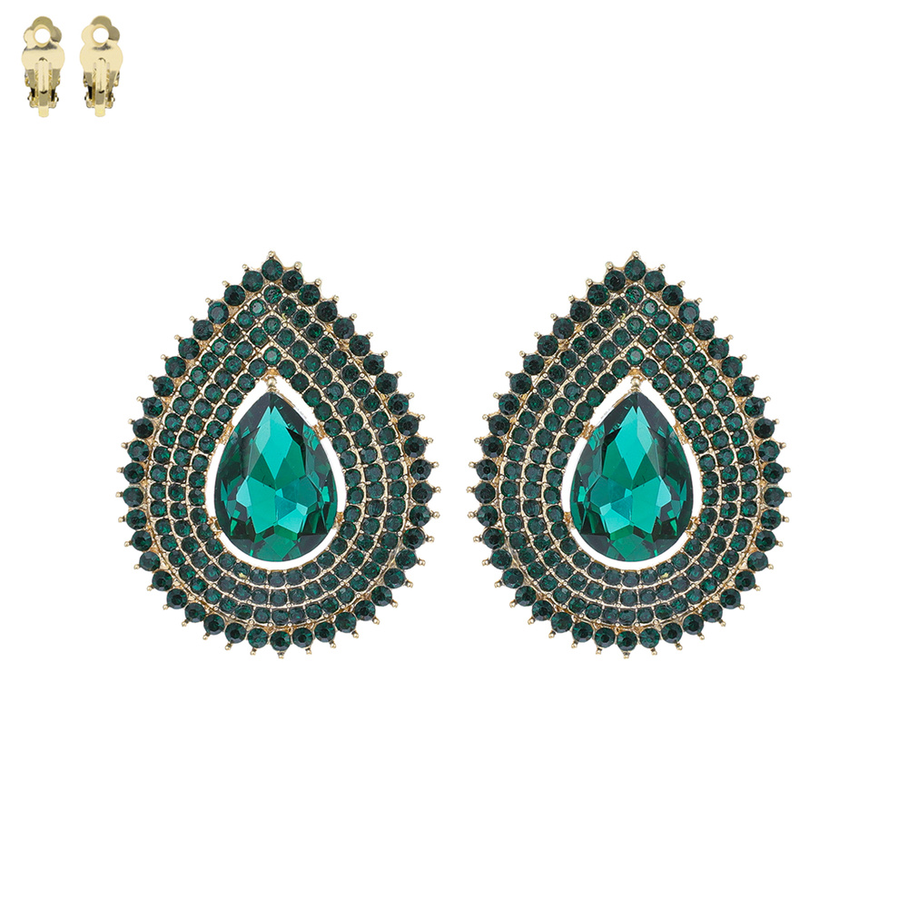 Teardrop Gem With Stones Clip Earrings Ecq21rcl