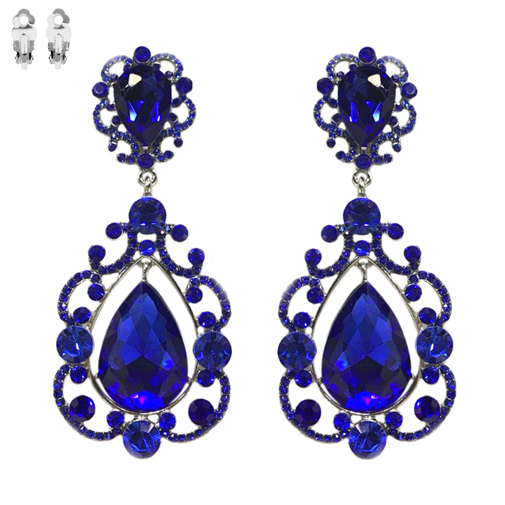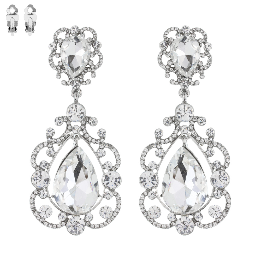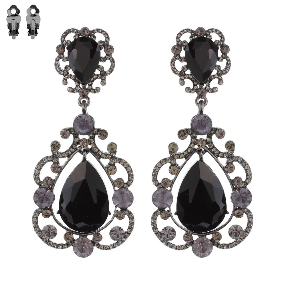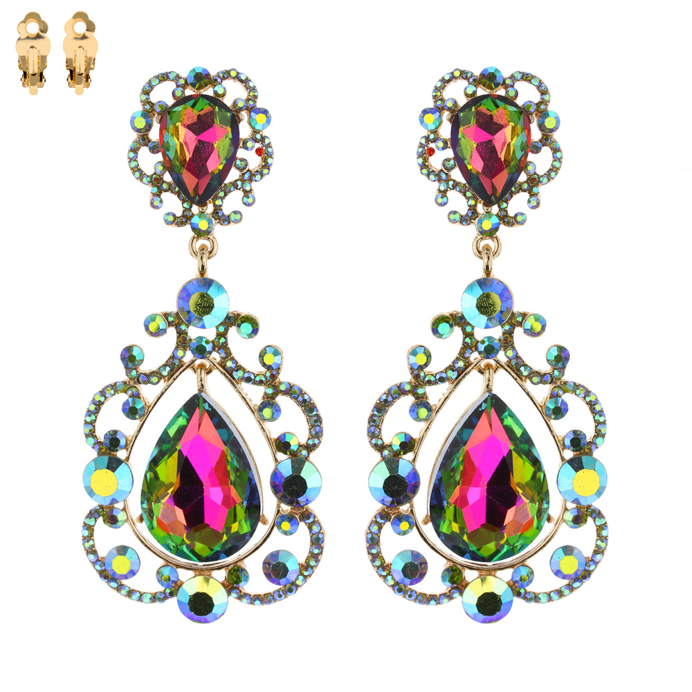 Dangly Teardrop Gem Clip Earrings Ecq28rcl